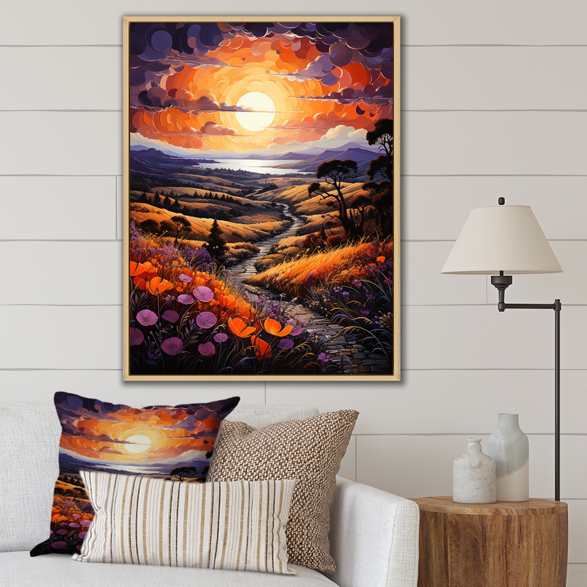 Designart "Sunset Tangerine Twilight" Sunrisesunset Framed Canvas Print