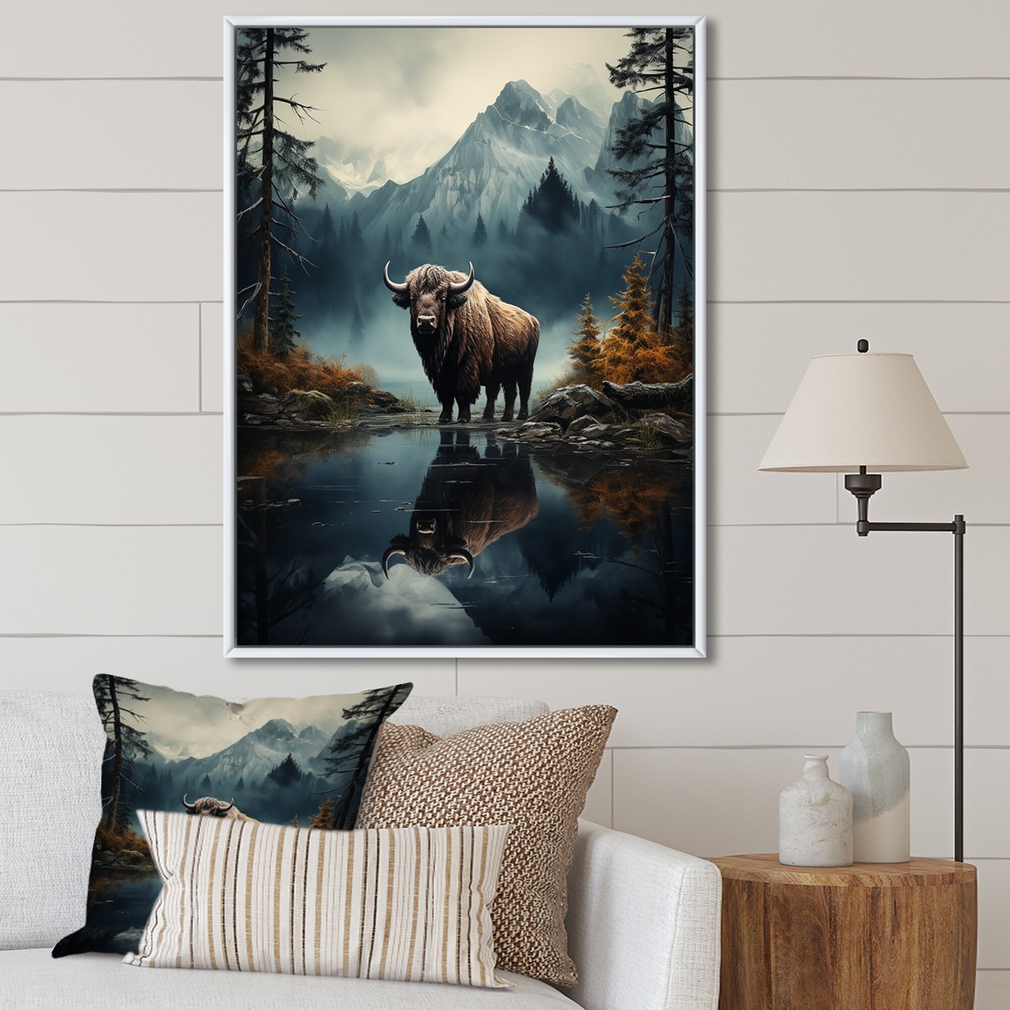Designart "Brown Teal Moose Twilight Symphony" Moose Framed Wall Decor