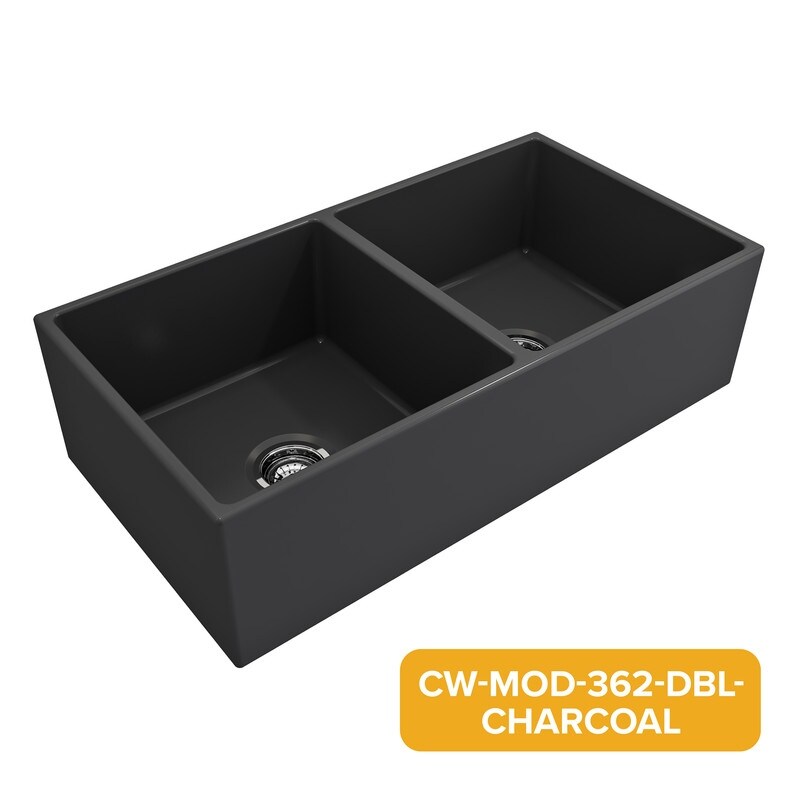 Crestwood 36" Modern Double Bowl Apron Fireclay Sink - Charcoal