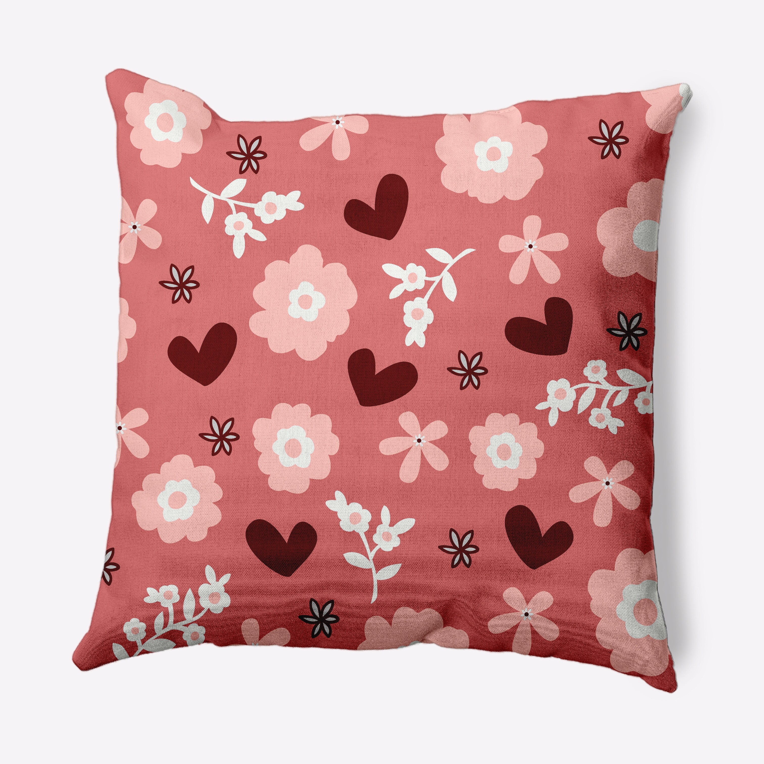 Flowery Love Valentines Indoor/Outdoor Throw Pillow