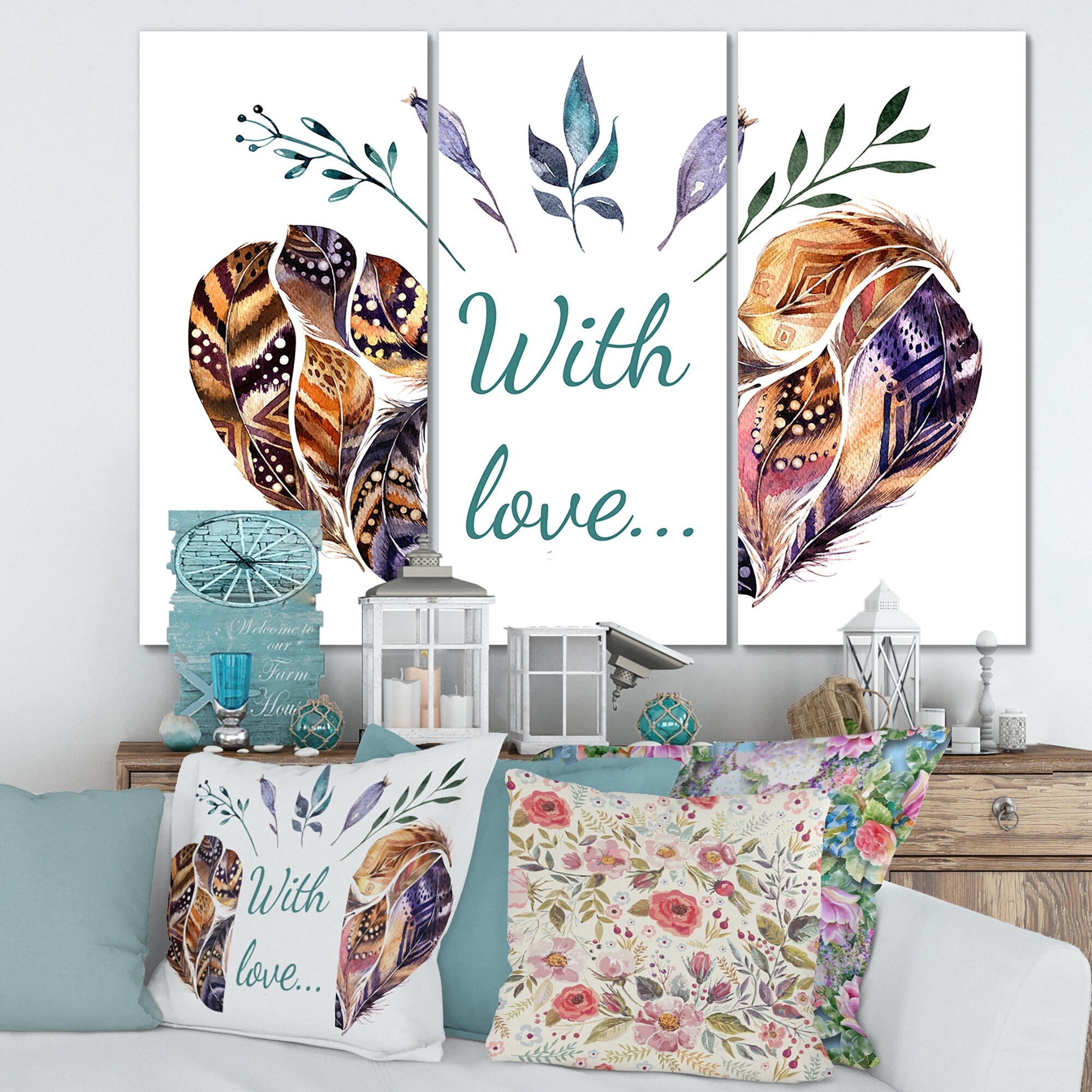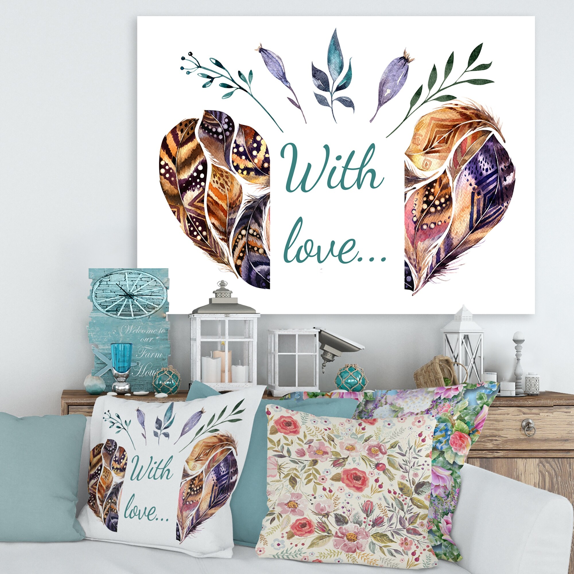 Designart "Hearted Shaped Valentine Feathers" Traditional Canvas Wall Art Print