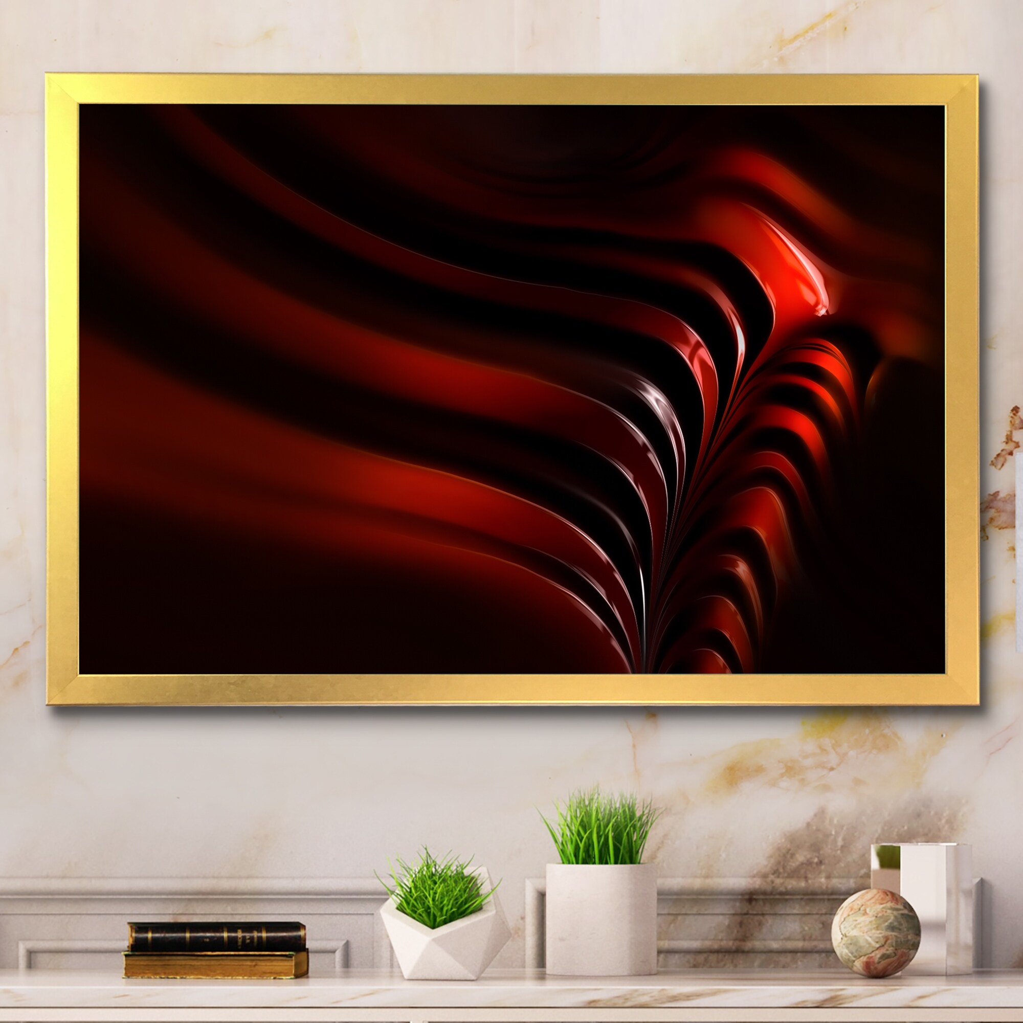 Designart "Abstract Red Vortex" Modern Framed Art Print