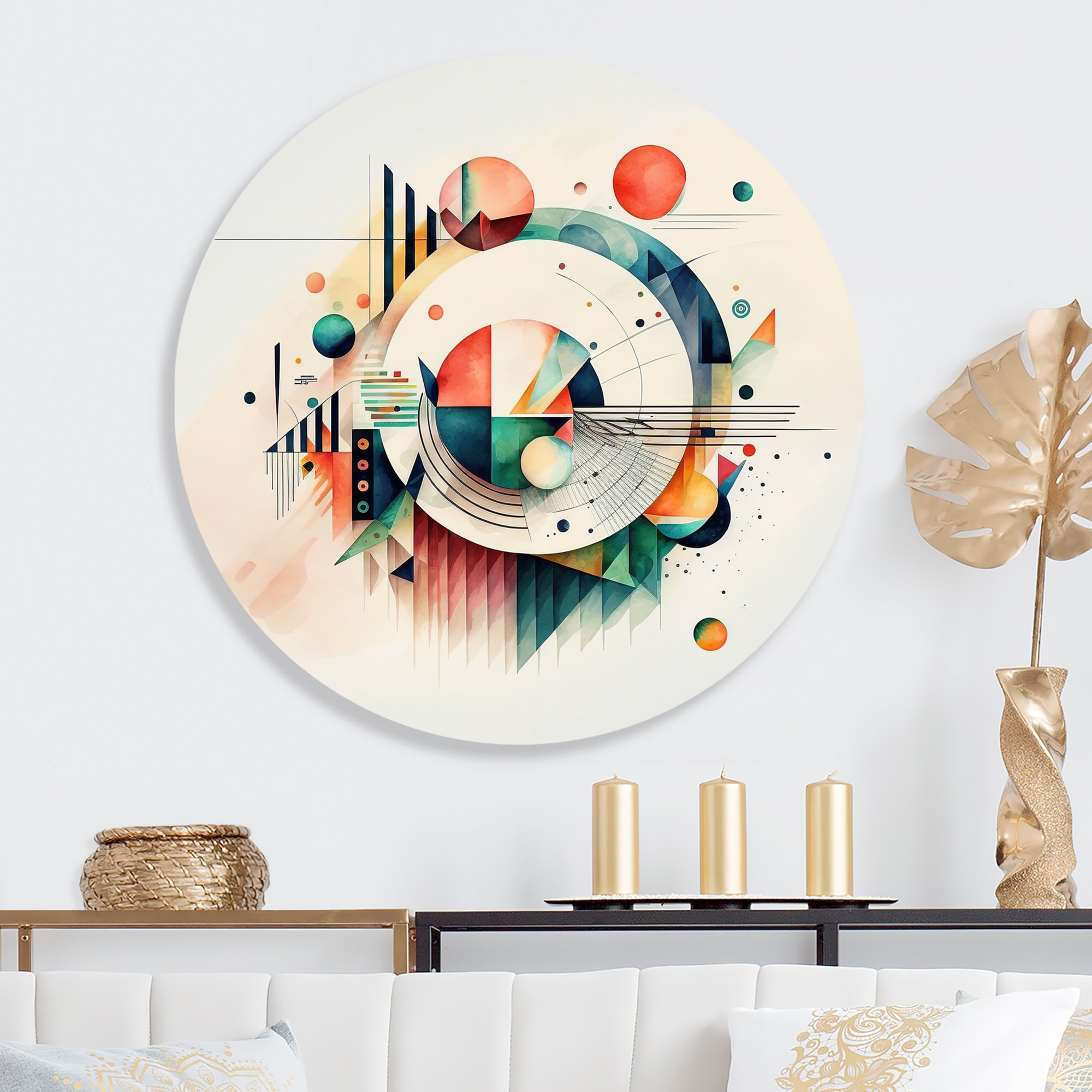 Designart 'Multi-Color Geometric Art' Modern Metal Round Wall Art