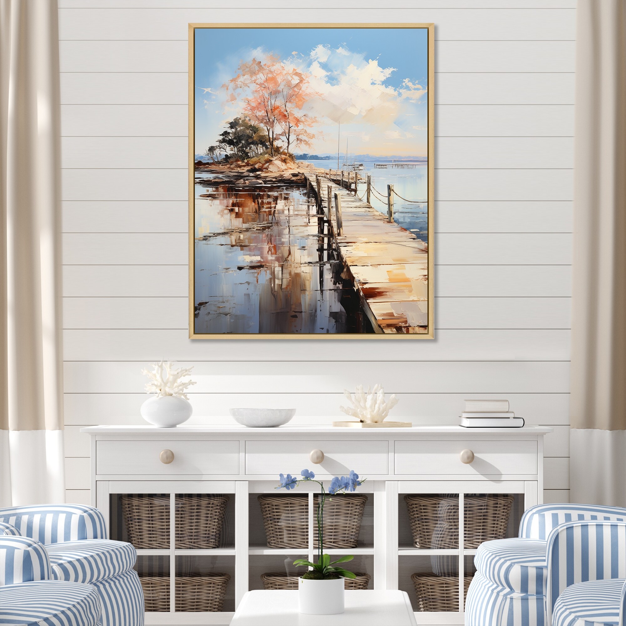 Designart "Pier And Dock Seaside I" Coastal Pier Framed Canvas Wall Art