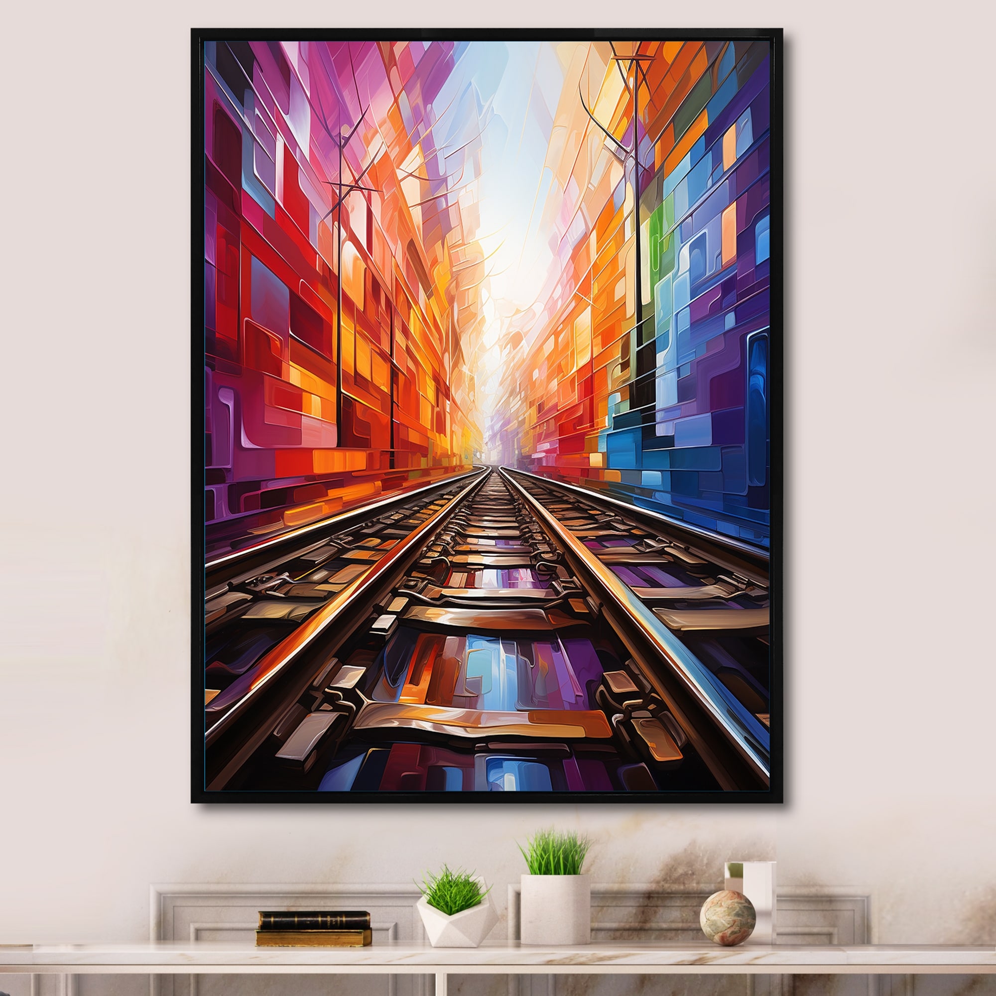 Designart "Train Colorful Tracks II" Train Framed Canvas Wall Art