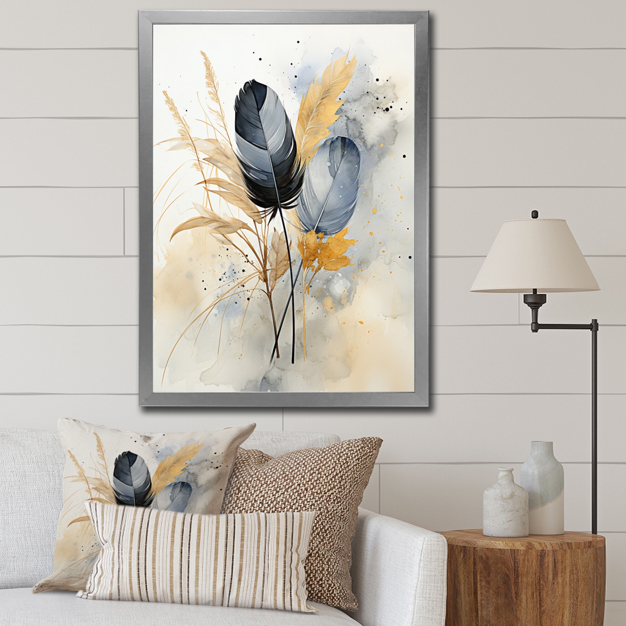 Designart "Asian Art Feathers Sumi II" Asian Art Framed Canvas Wall Art