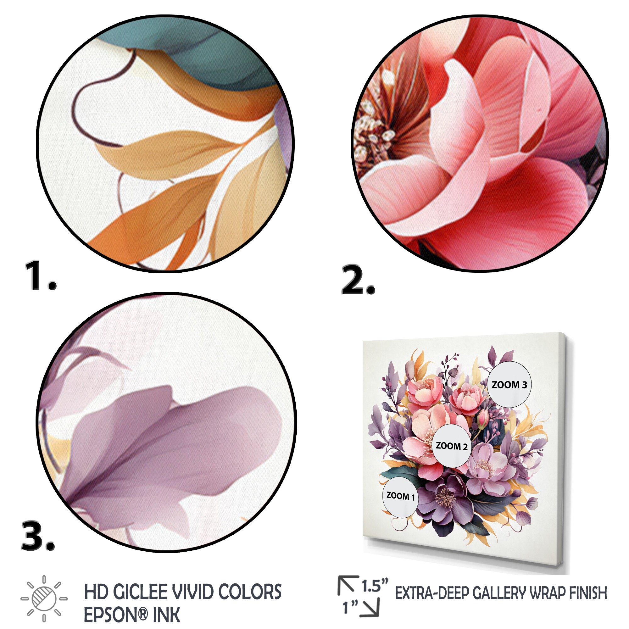 Designart "Colorful Minimalism Bouquet I" Assorted Bouquets Framed Canvas Wall Art