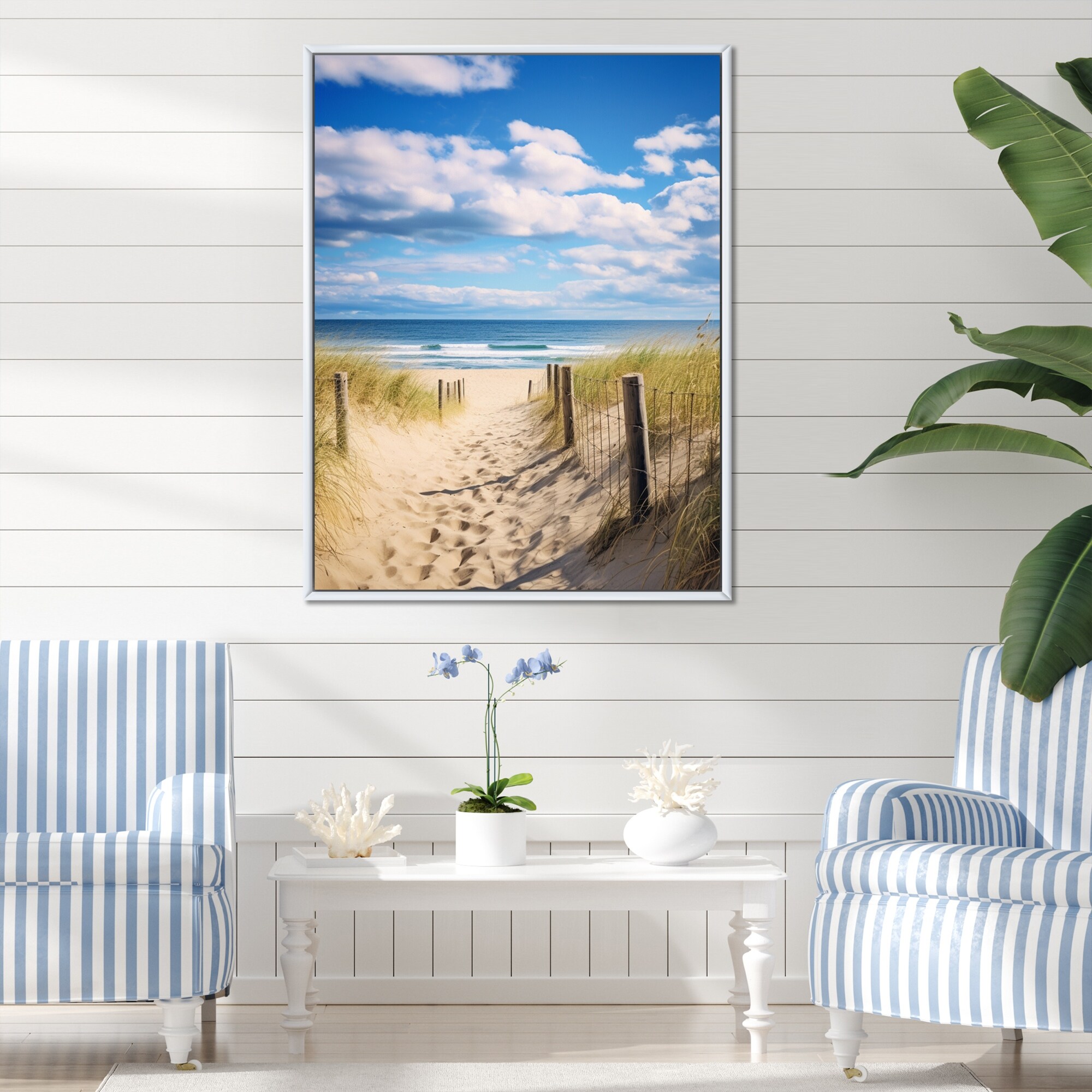 Designart "Path To the Beach I" Coastal Beach Sand Framed Wall Art Prints