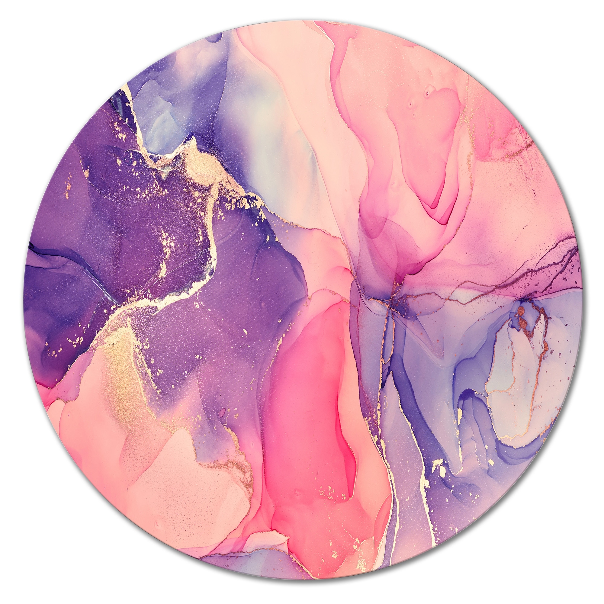 Designart 'Pink And Gold Fuchia Liquid Art VI' Modern Metal Circle Wall Art