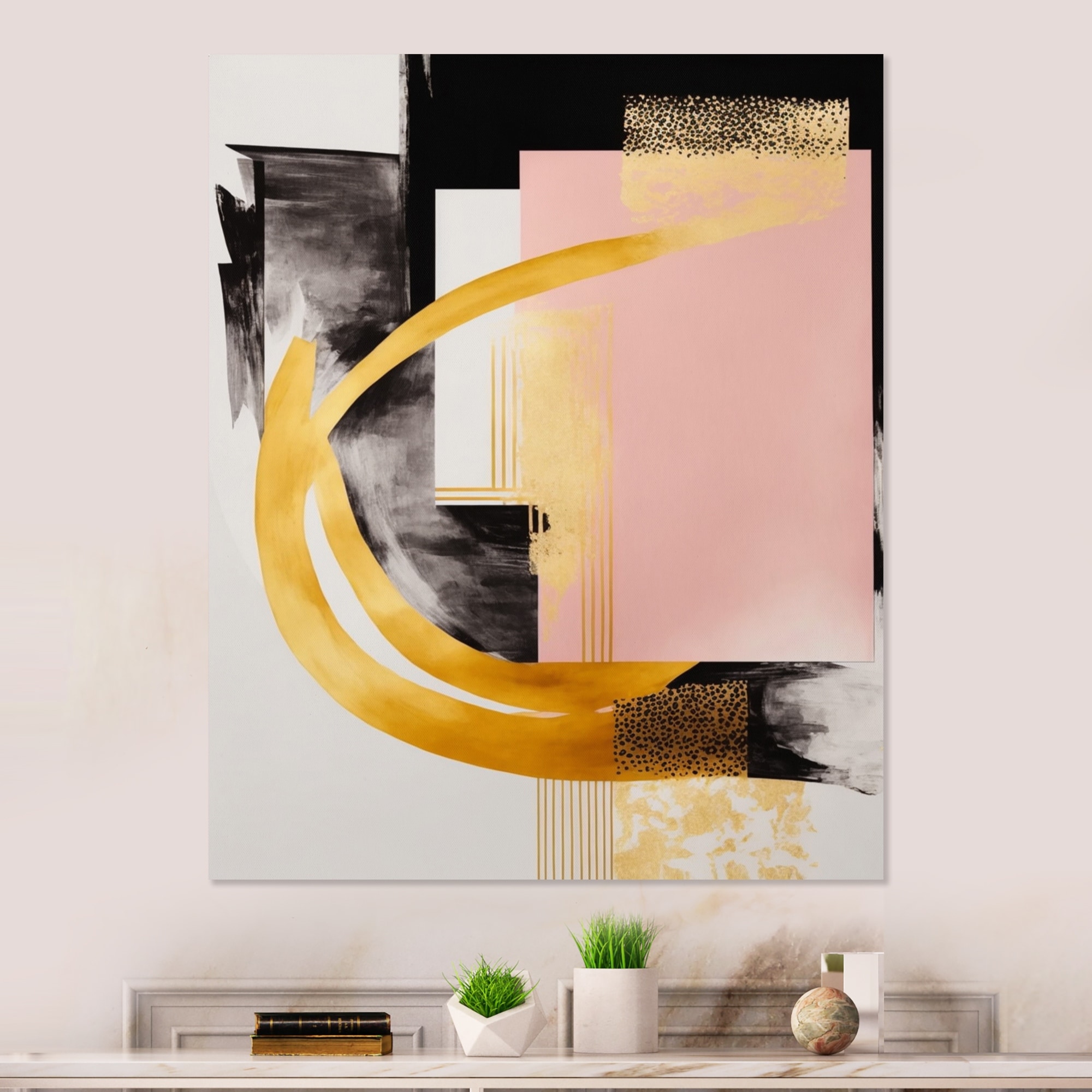 Designart 'Pink And Gold Art Deco III' Modern Canvas Wall Art