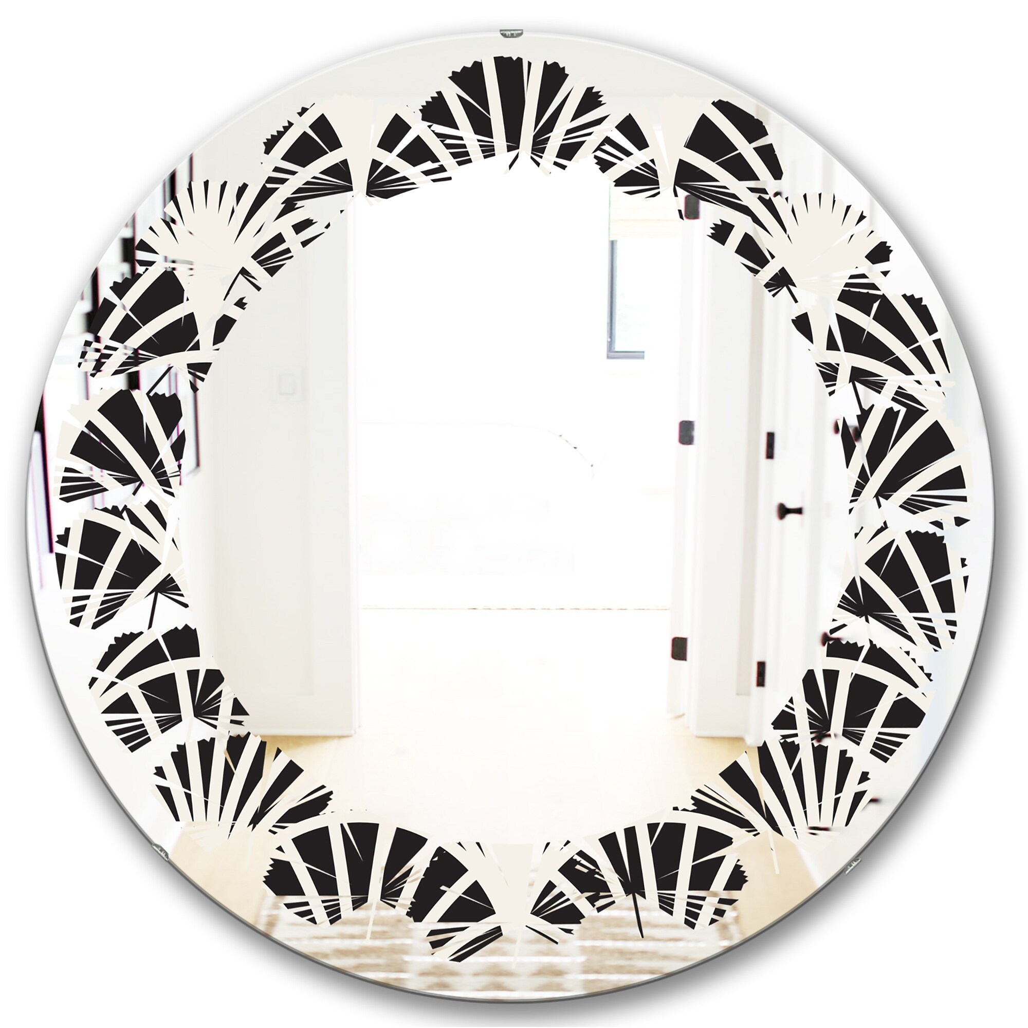 Designart 'Art Deco Seal pattern' Printed Modern Round or Oval Wall Mirror - Hexagon Star