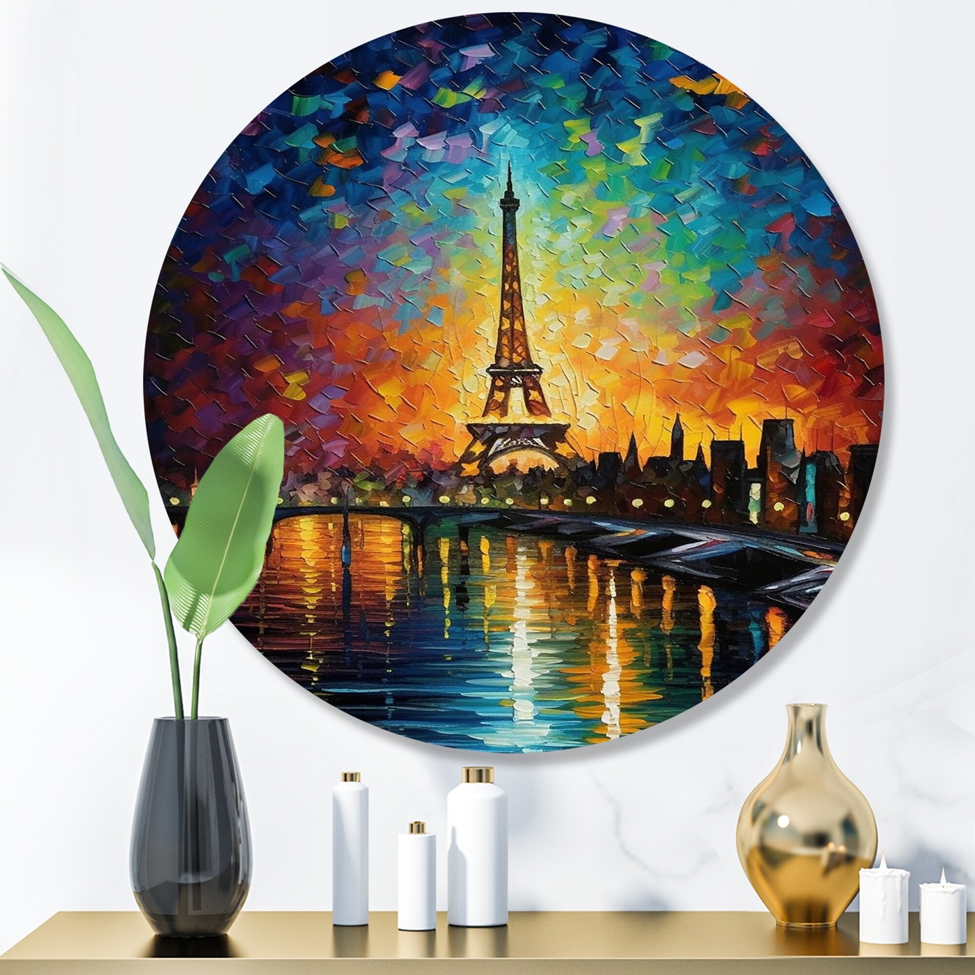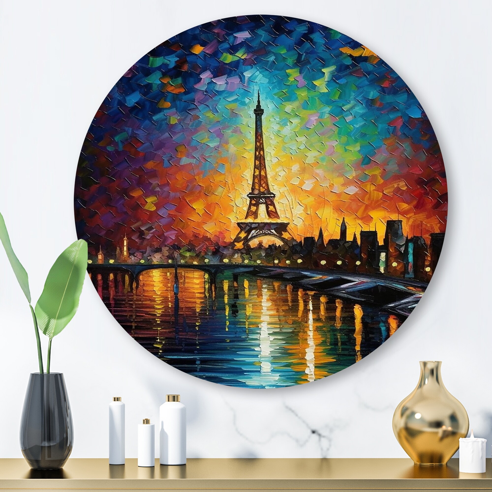 Designart "Colorful Whimsical Skyline II" City Art Deco Metal Round Wall Art