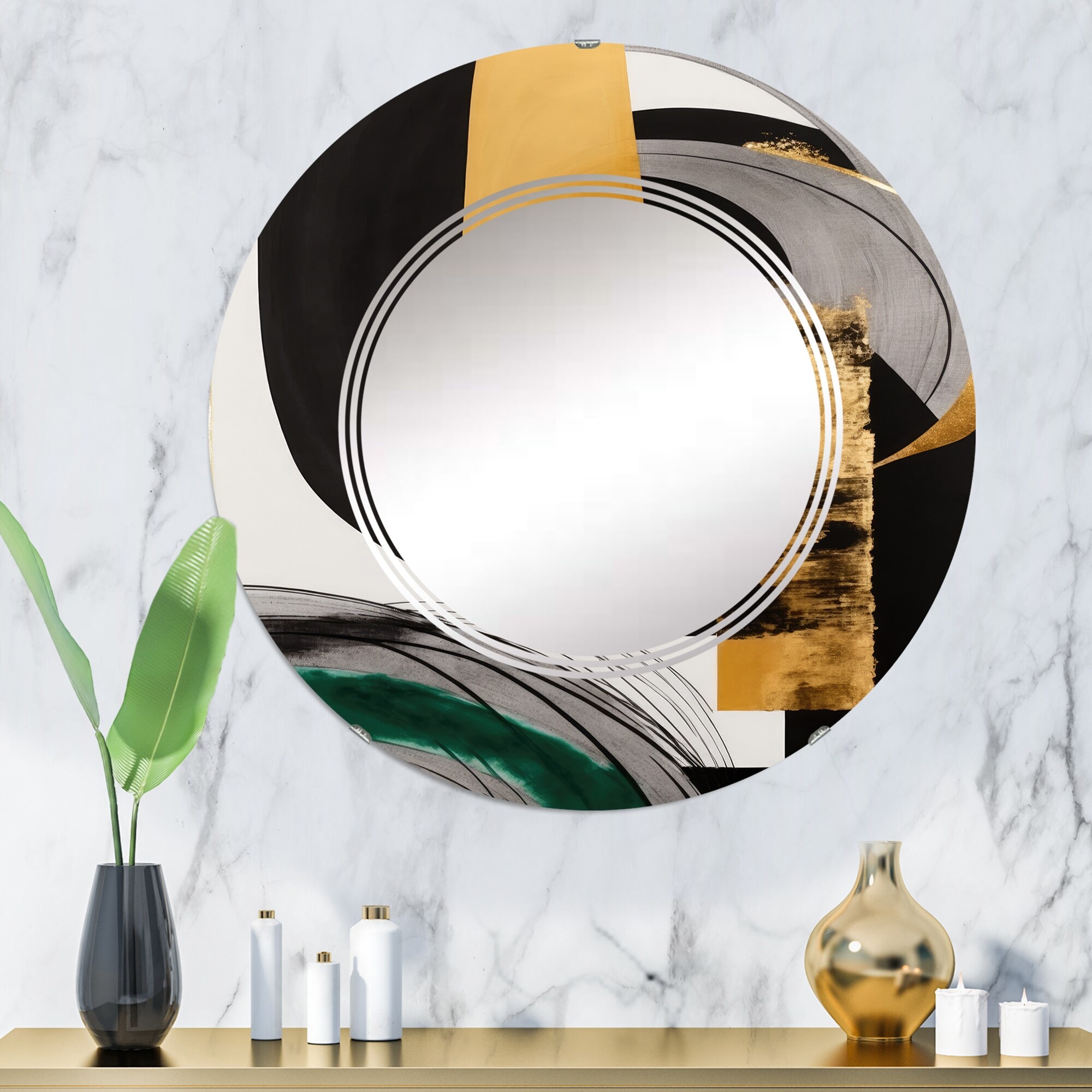 Designart 'Modern Green Art Deco II' Printed Modern Transitional Wall Mirror