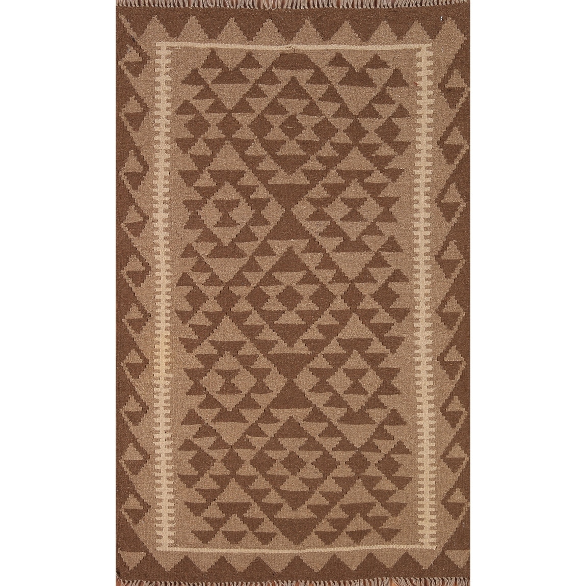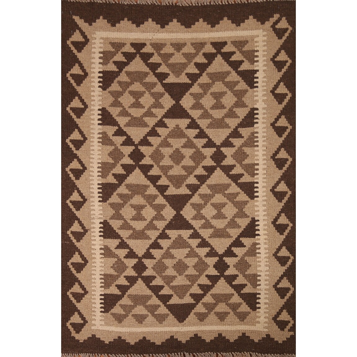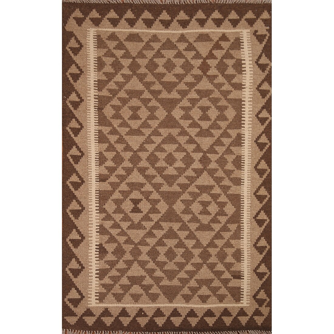 Reversible Kilim Rug Brown Geometric Flat-weave Wool Carpet - 3'4" x 5'0"