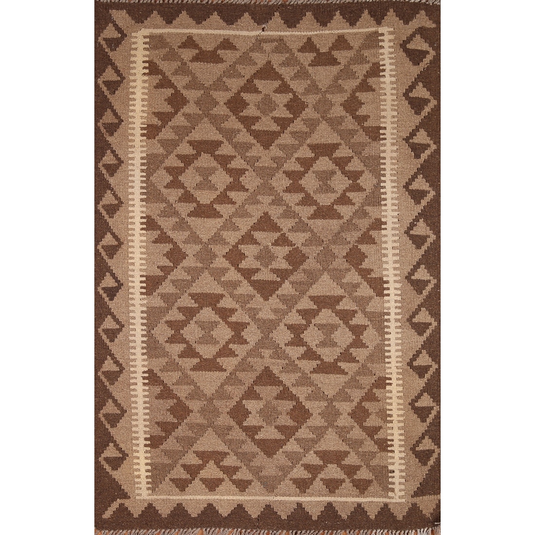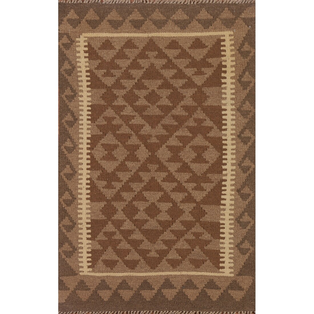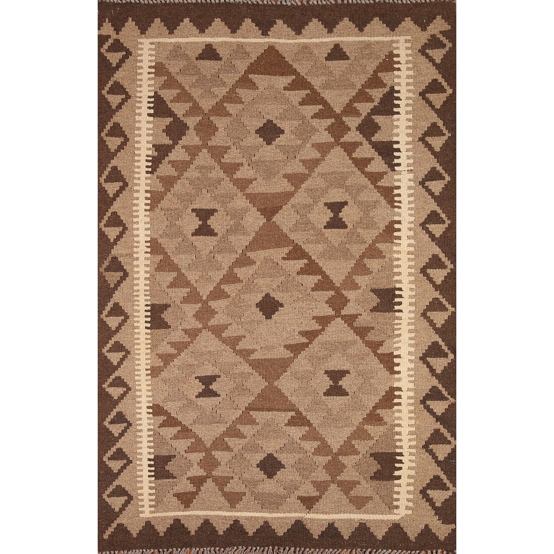 Reversible Kilim Rug Brown Geometric Flat-weave Wool Carpet - 3'4" x 5'0"