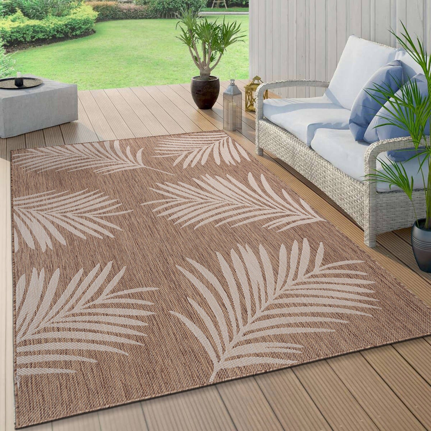 World Rug Gallery Contemporary Palm Leaves Textured Flat Weave Indoor/Outdoor Area Rug