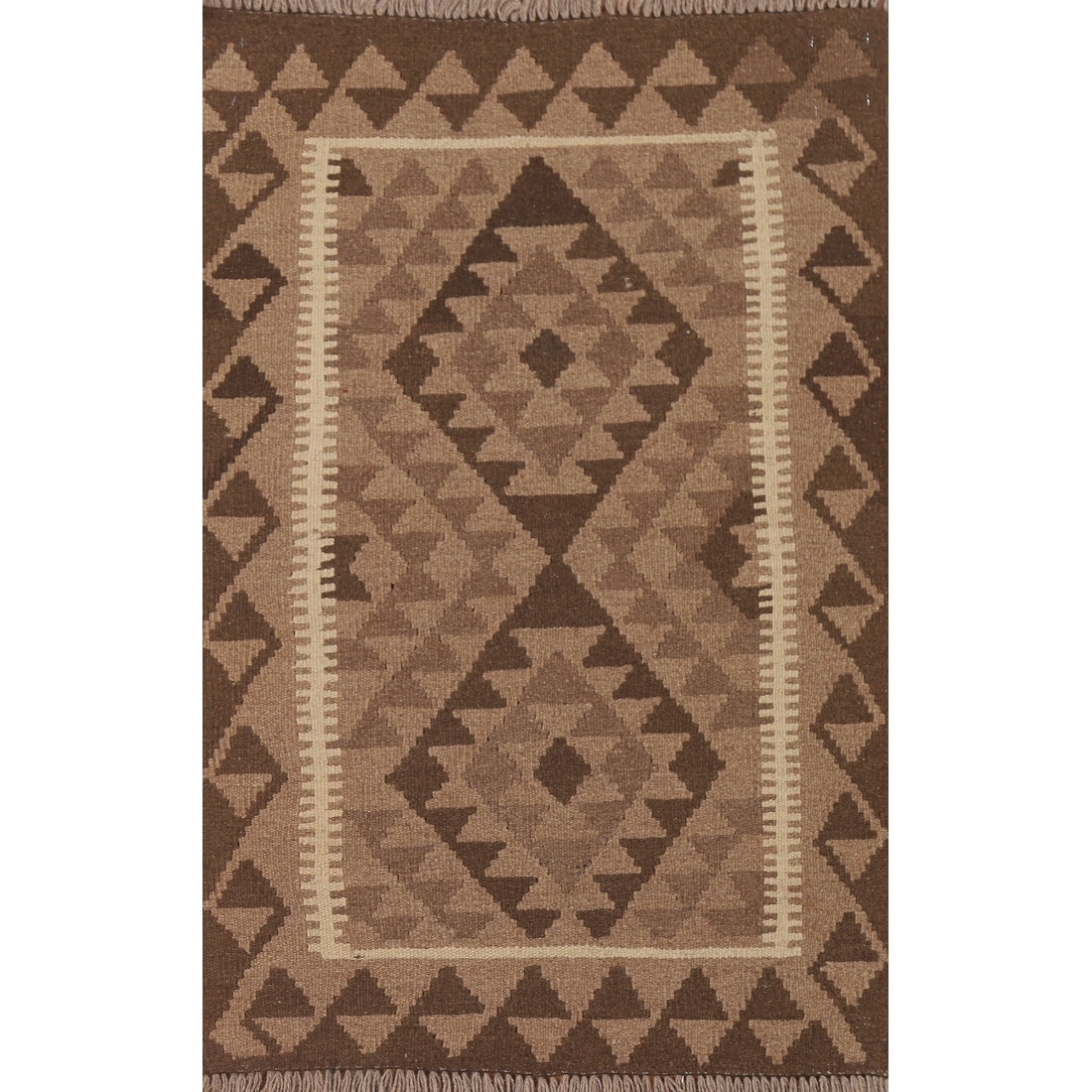 Geometric Kilim Rug Reversible Brown Flat-weave Wool Carpet - 2'9" x 4'0"