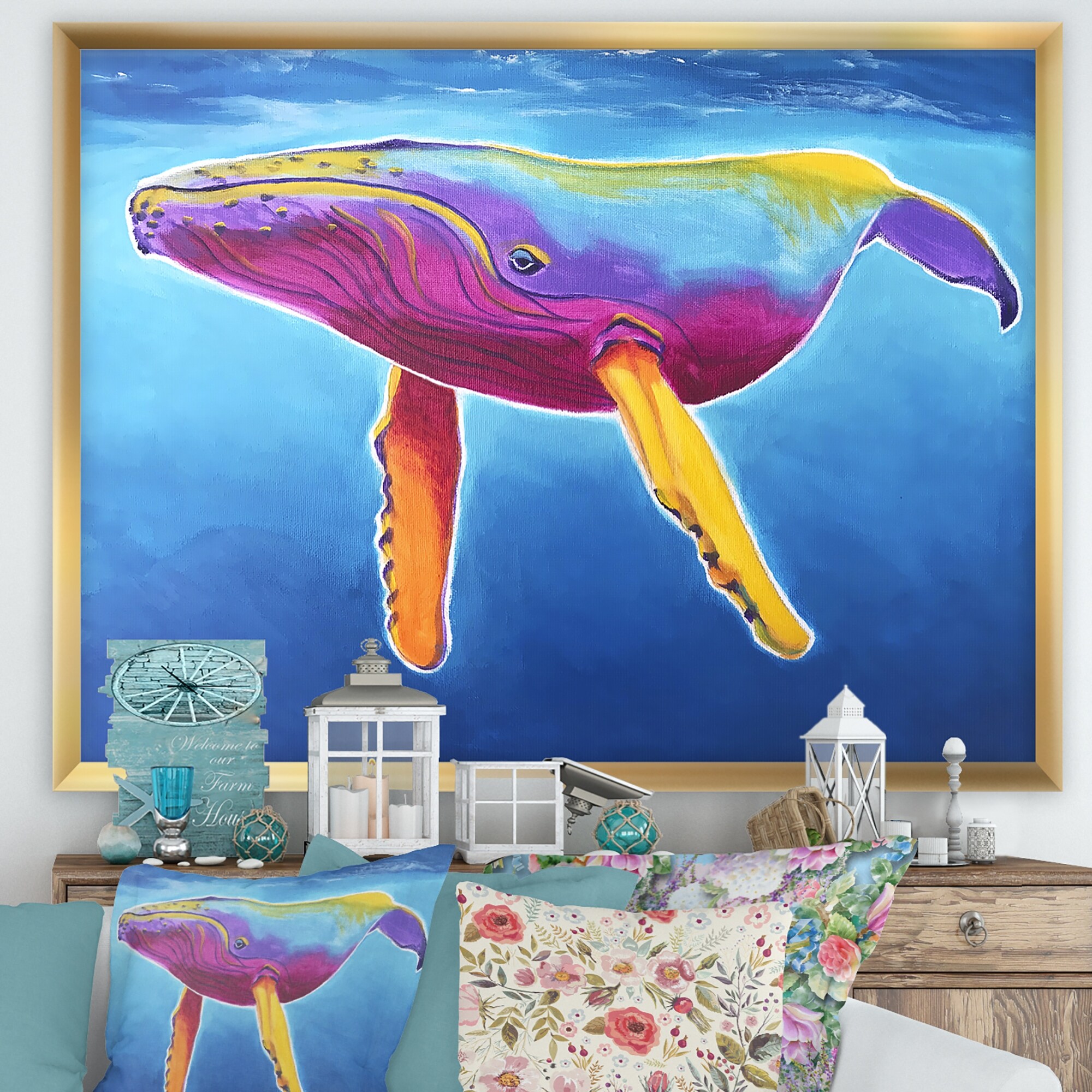 Designart "Humpback Whale - Rainbow" Nautical & Coastal Framed Art Print
