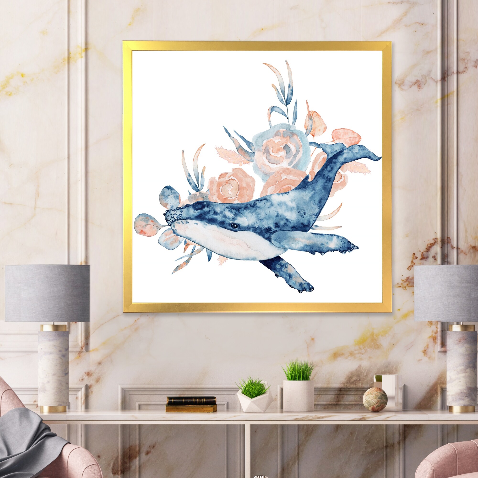 iCanvas "Watercolor Floral Whales" by Nature Magick Canvas Print