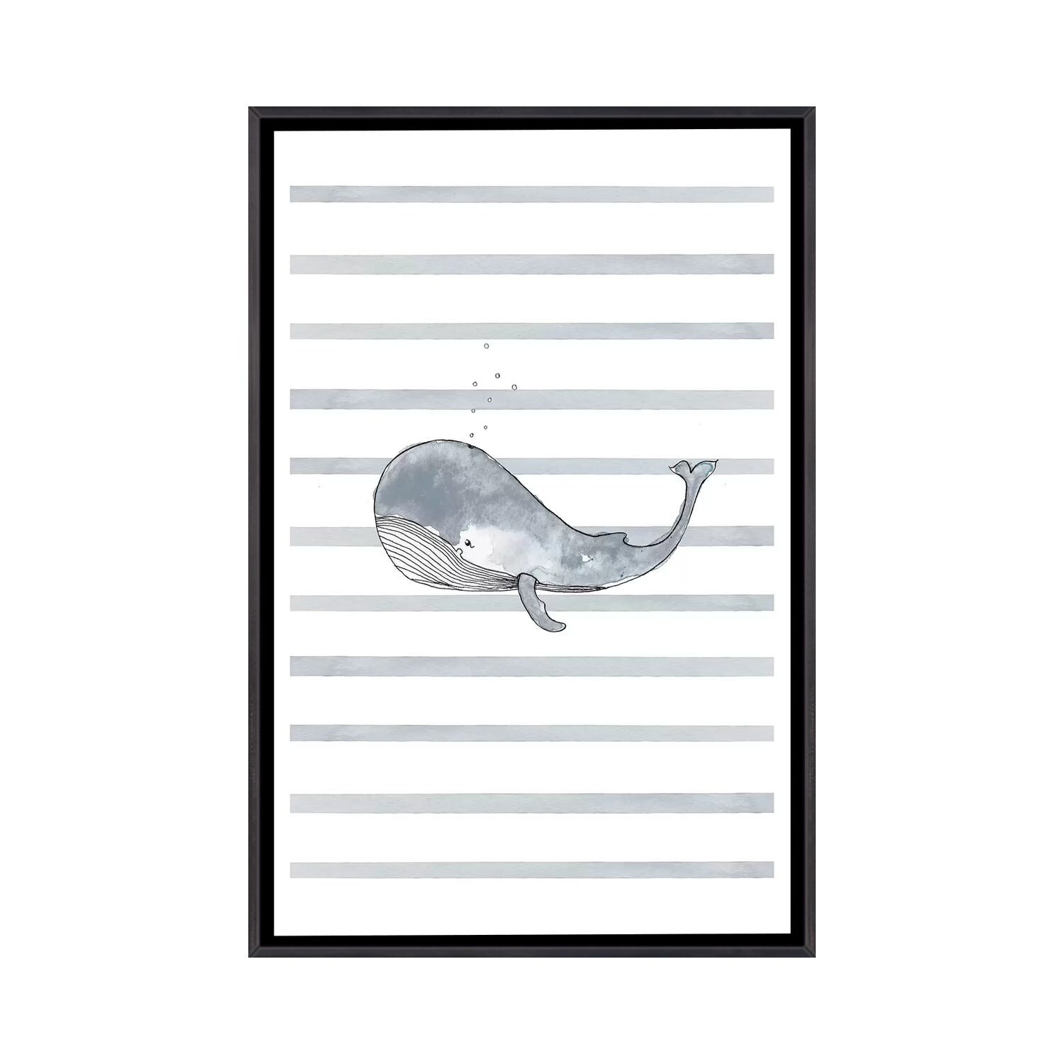iCanvas "Whale Right Stripes I" by Leah Straatsma Framed Canvas Print