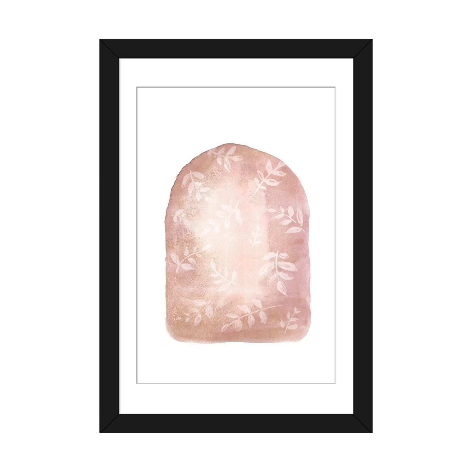 iCanvas "Blush pink shapes and leaves" by Whales Way Framed