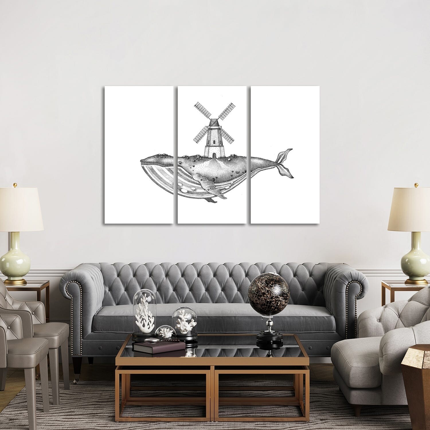 iCanvas "Whale Windmill" by Christophe Hompesch 3-Piece Canvas Wall Art Set