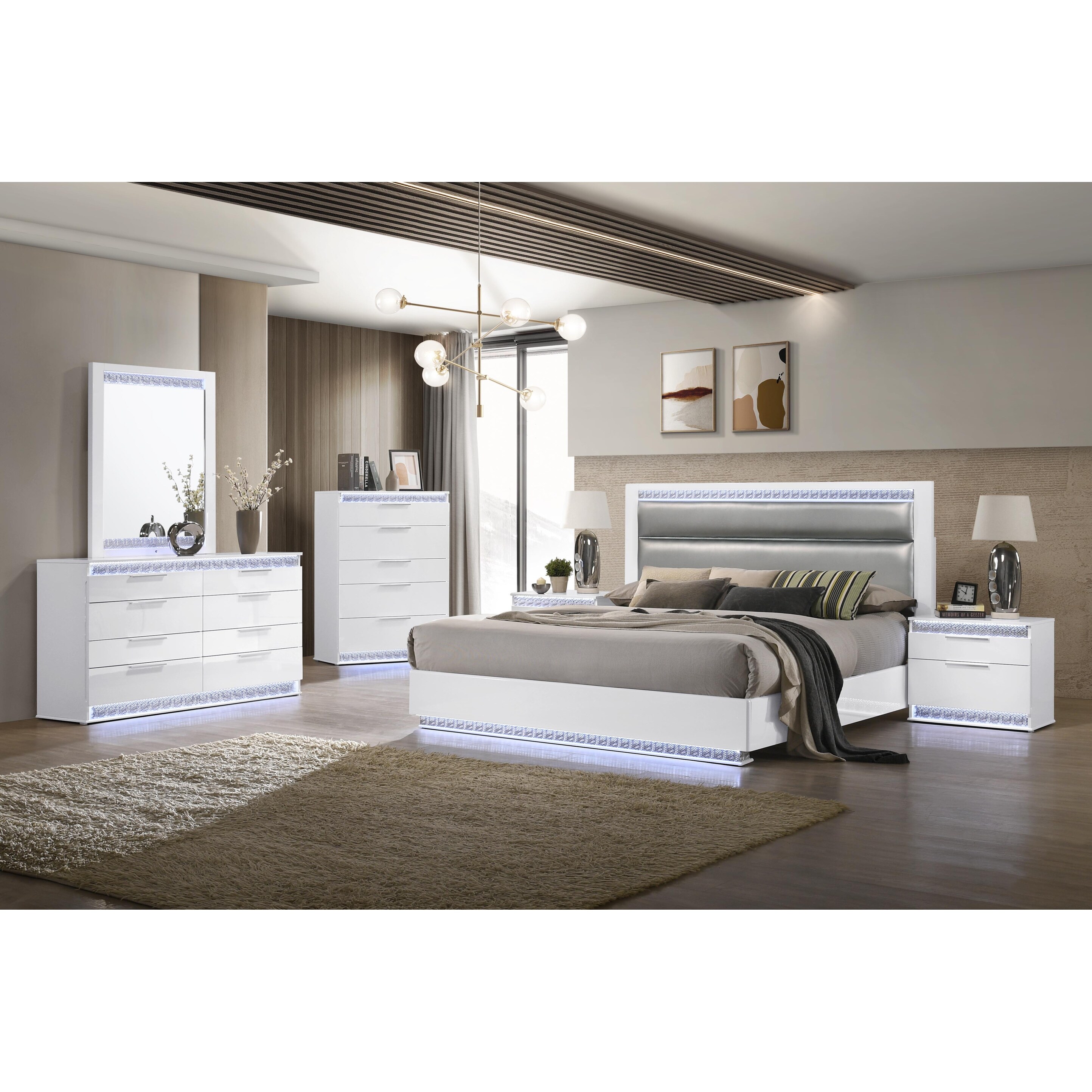 Coaster Furniture Felicity Glossy White Bedroom Set with LED Lighting