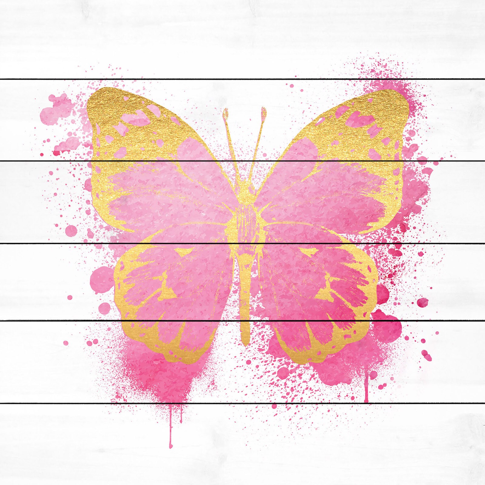 Marmont Hill - Handmade Butterfly Gold Pink Painting Print on White Wood