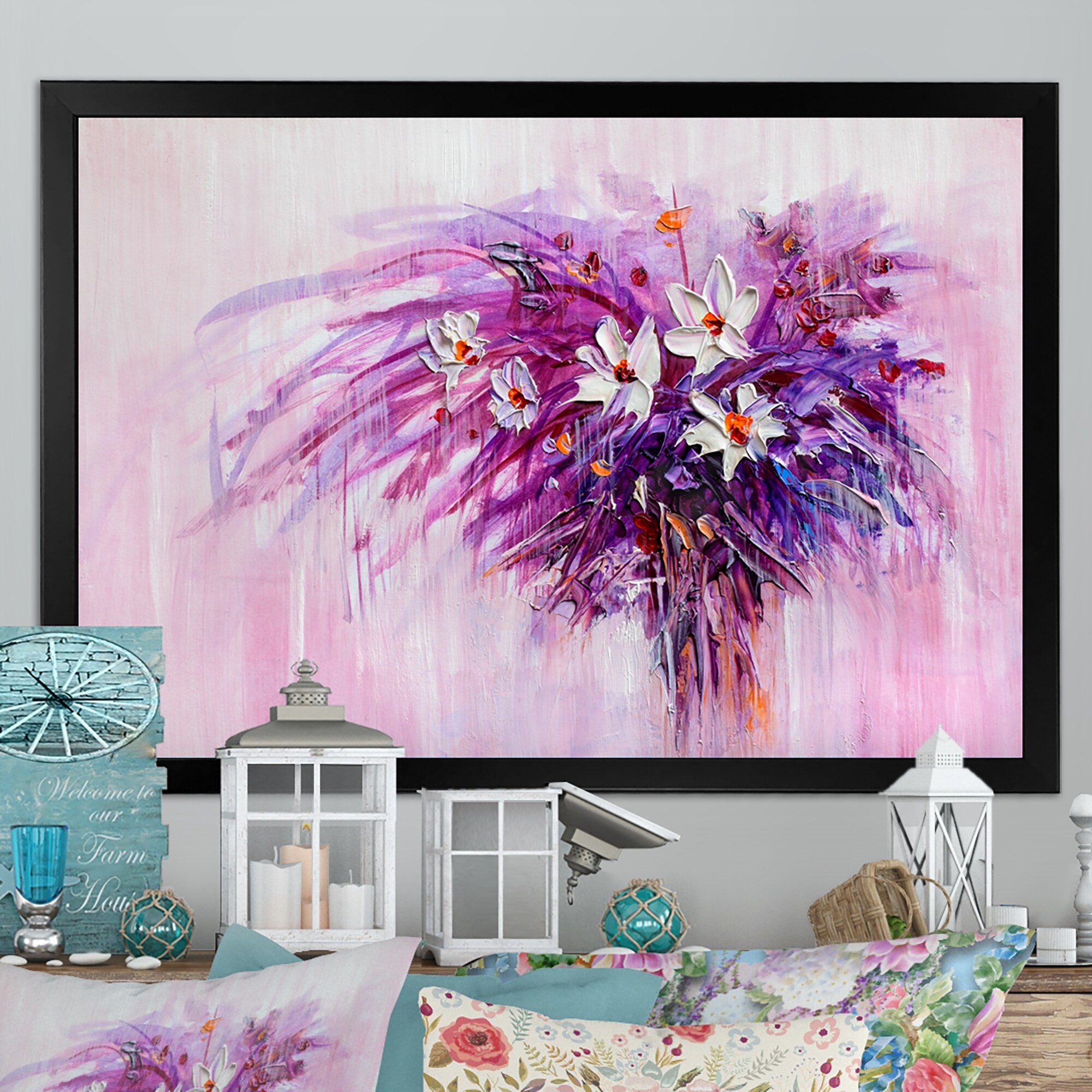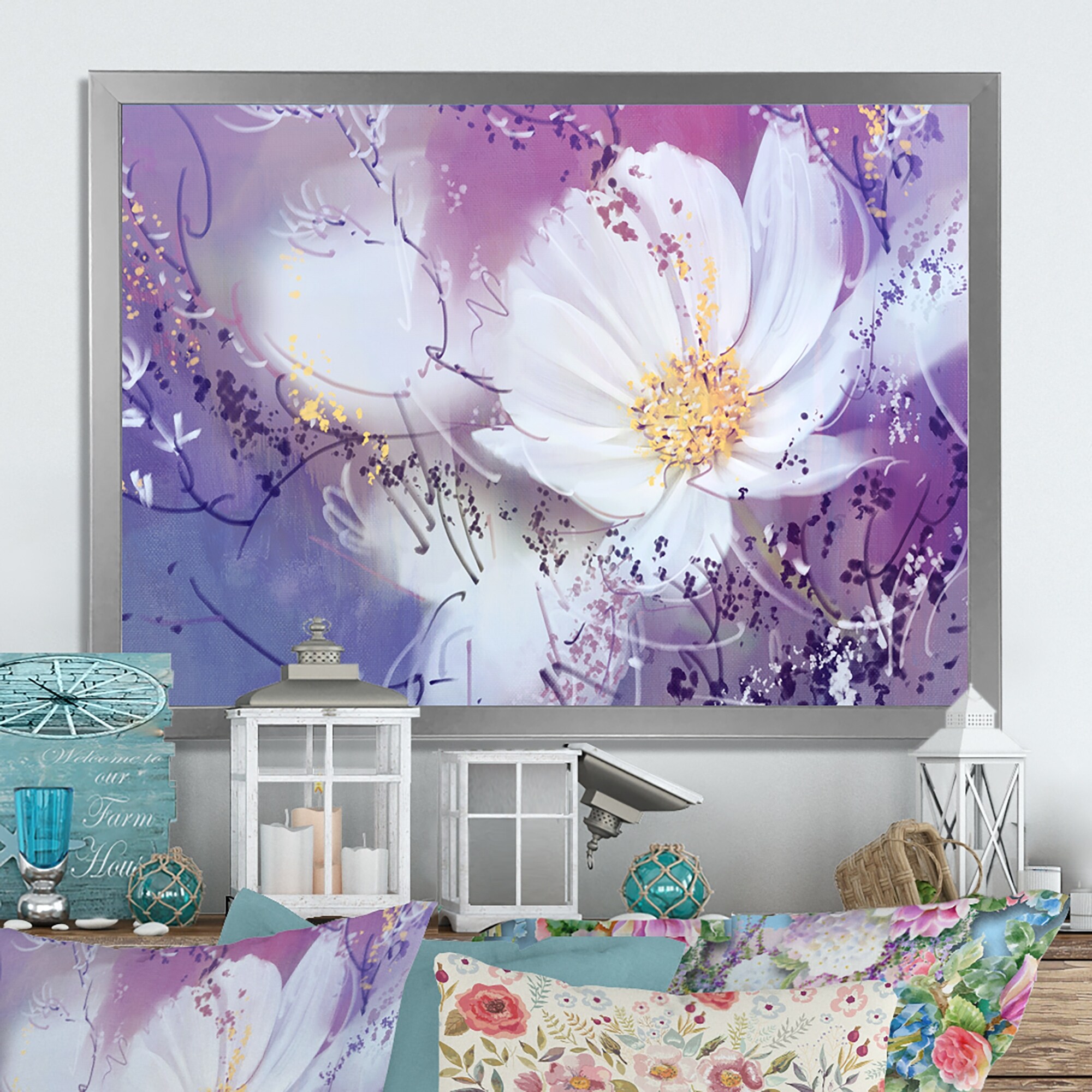 Designart "Life Style White And Purple Flower Painting" Traditional Framed artwork