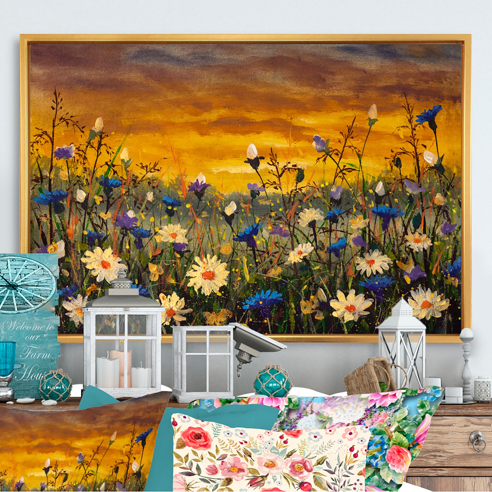 Designart "White Daisies Flowers on Sunset Painting" Traditional Framed Canvas artwork