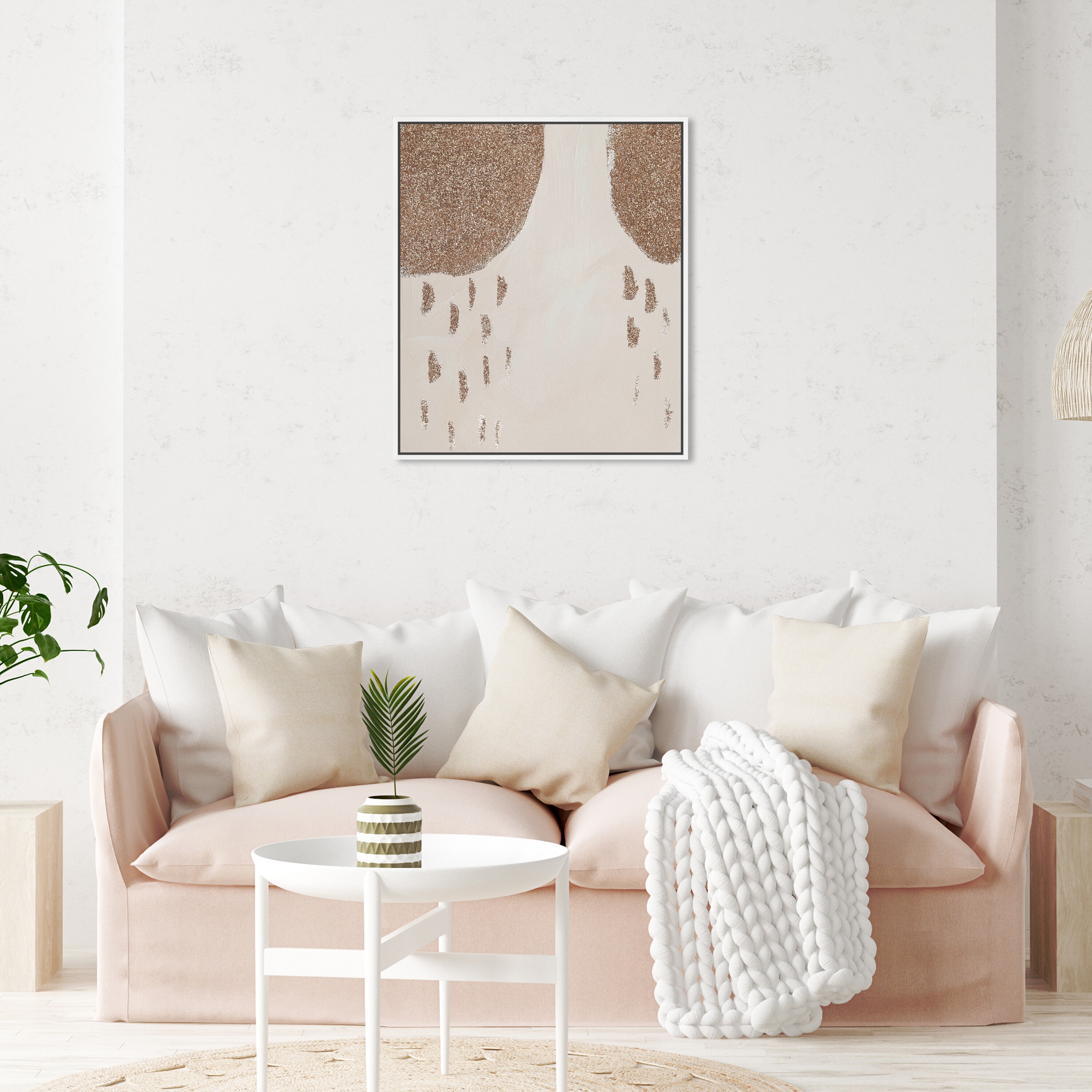 Oliver Gal 'Glitter Rain' Abstract Wall Art Framed Canvas Print Paint - Gold, White