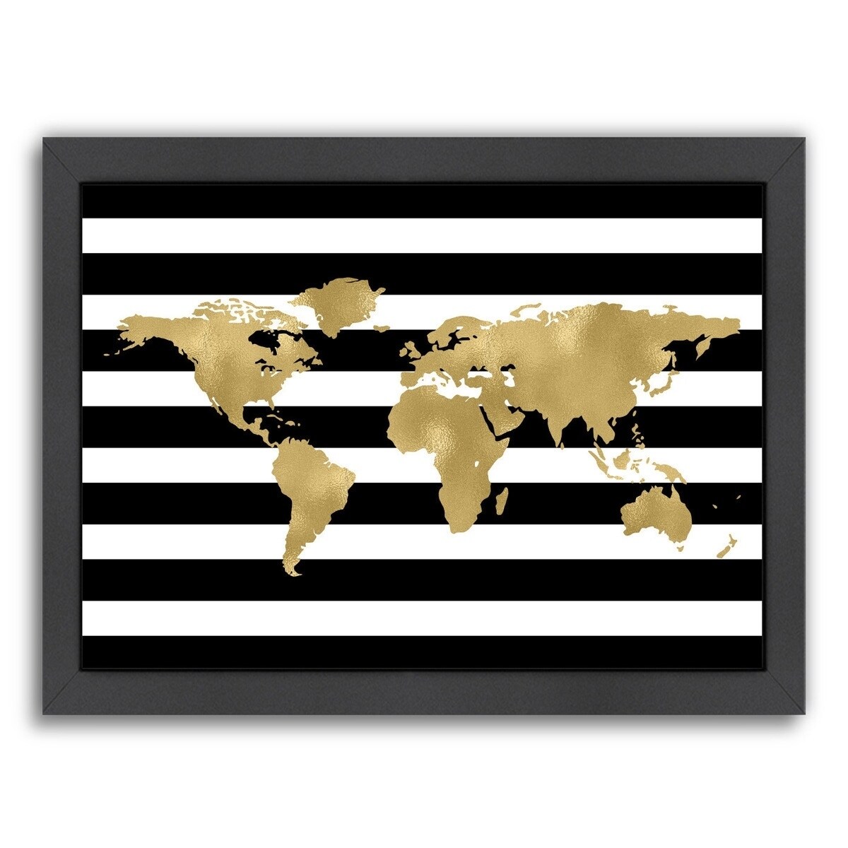 World Map Black White Stripe - Framed Print Wall Art