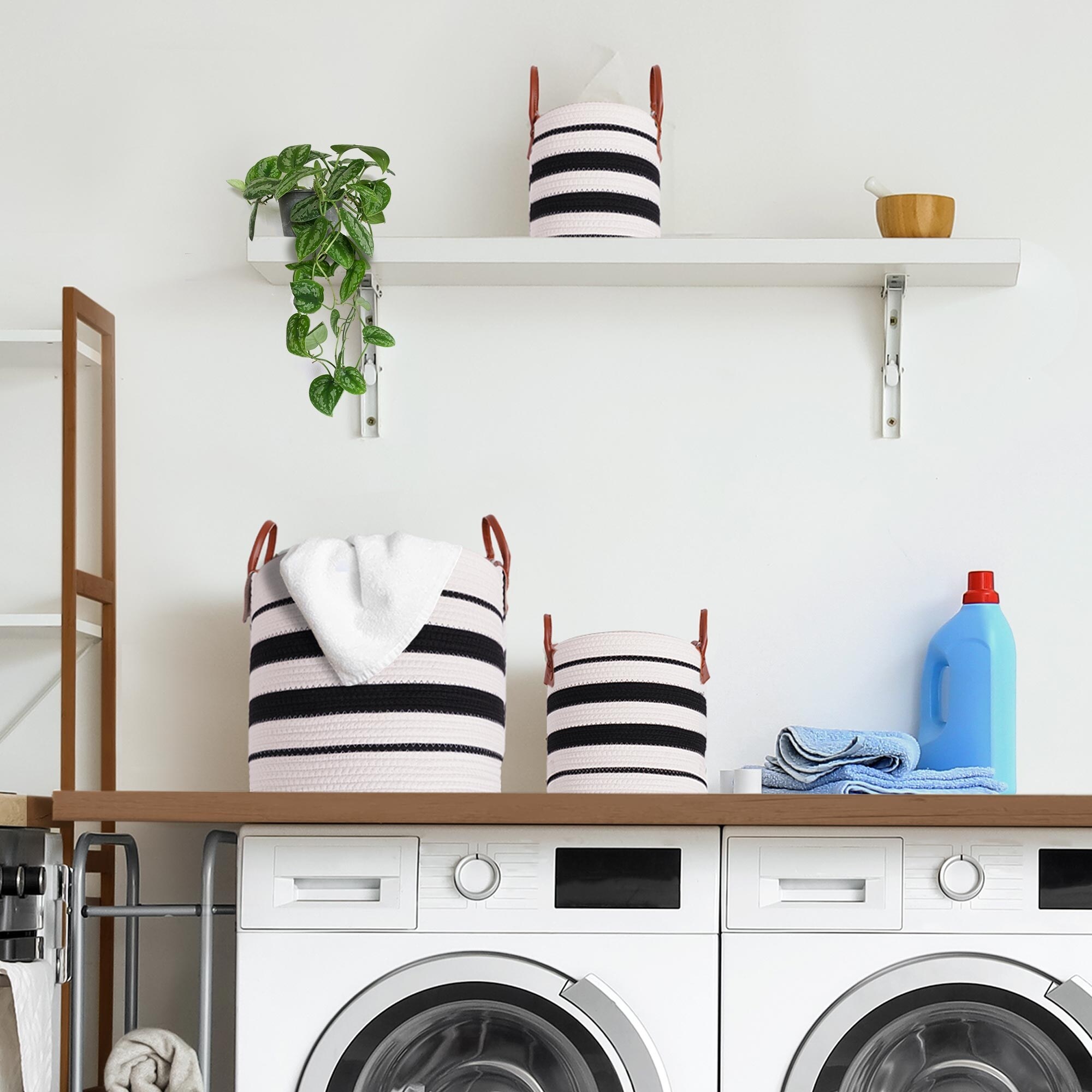 Boho Black and White Striped Woven Cotton Storage Basket Set of 3