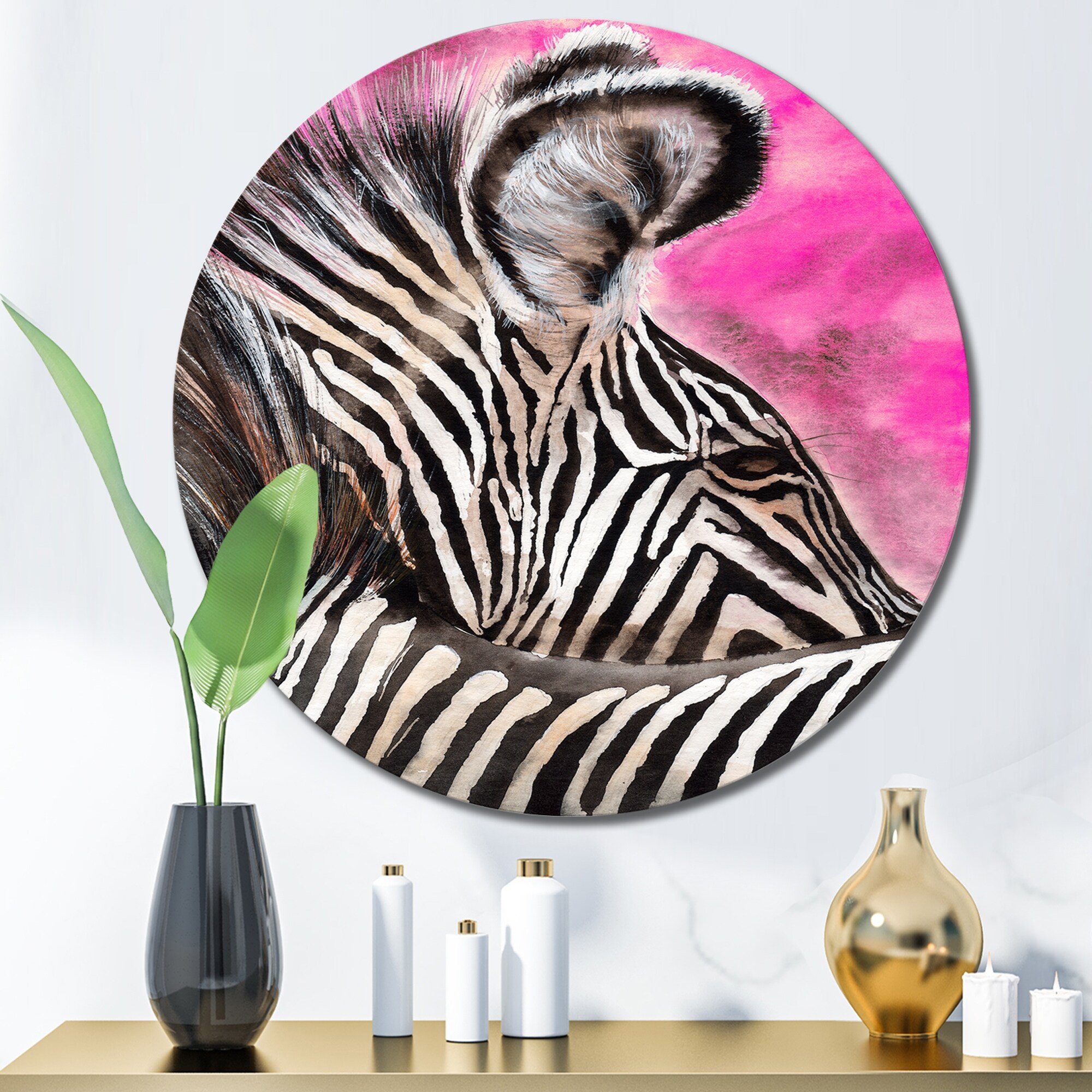 Designart 'Zebra With Contrasting Black And White Stripes I' Traditional Metal Circle Wall Art