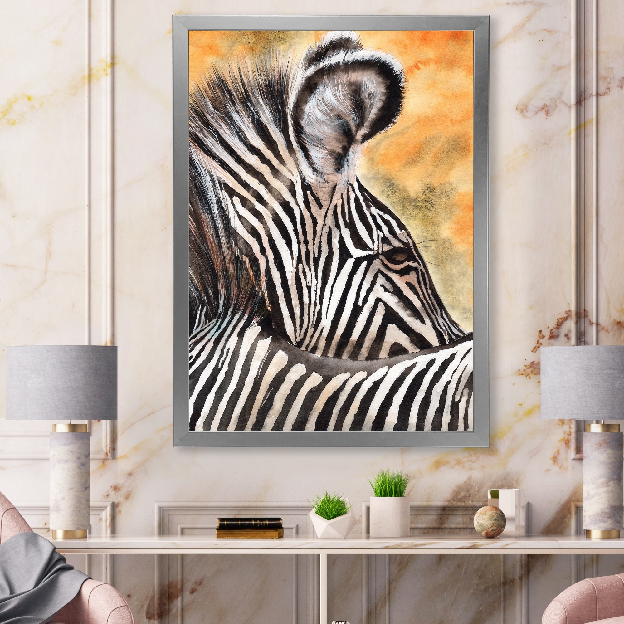 Designart "Zebra With Contrasting Black And White Stripes IV" Traditional Framed Canvas Wall Art Print