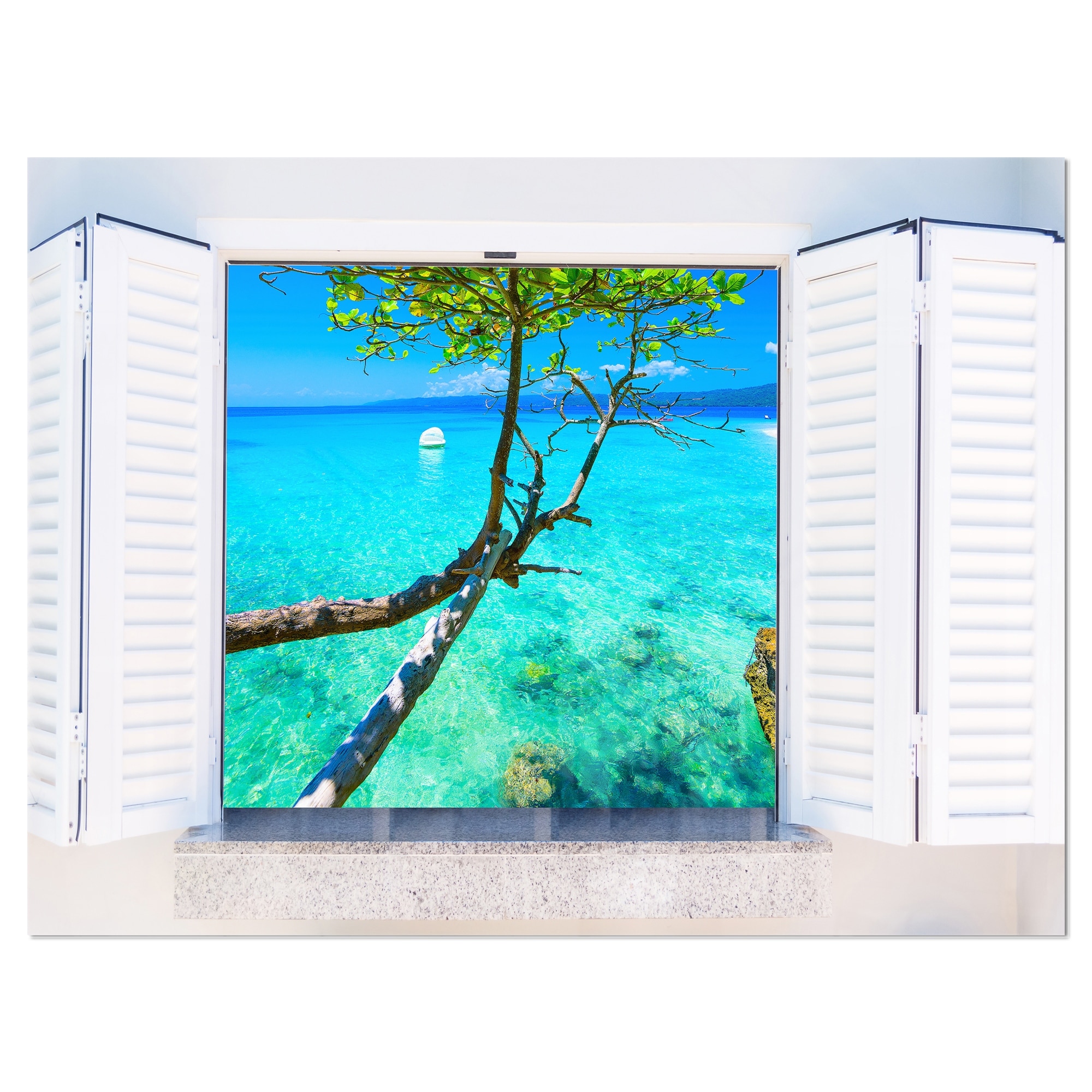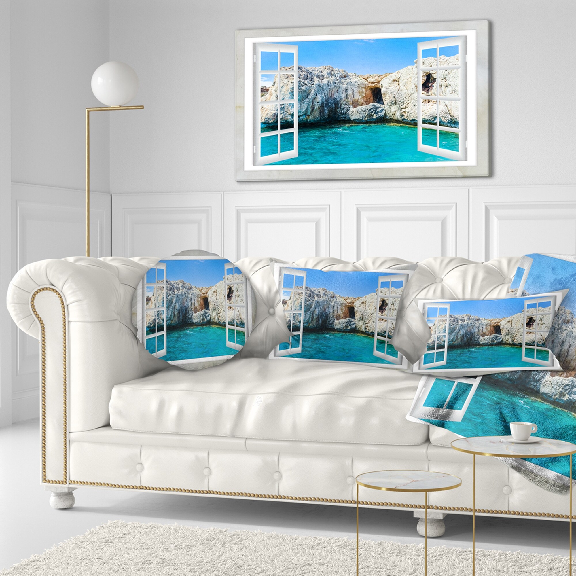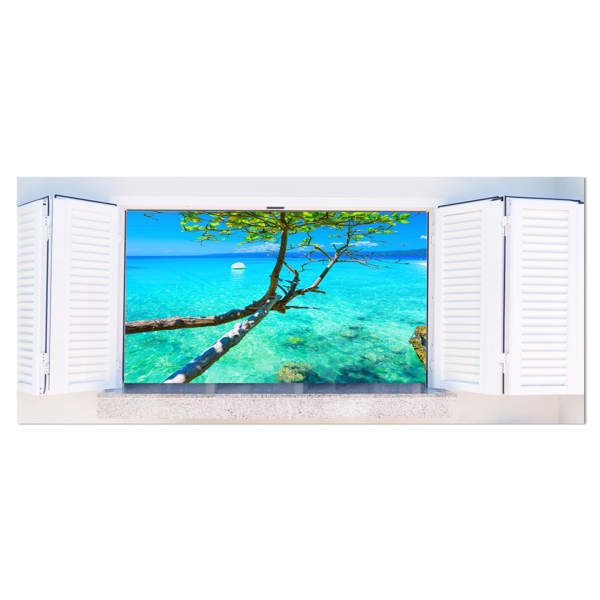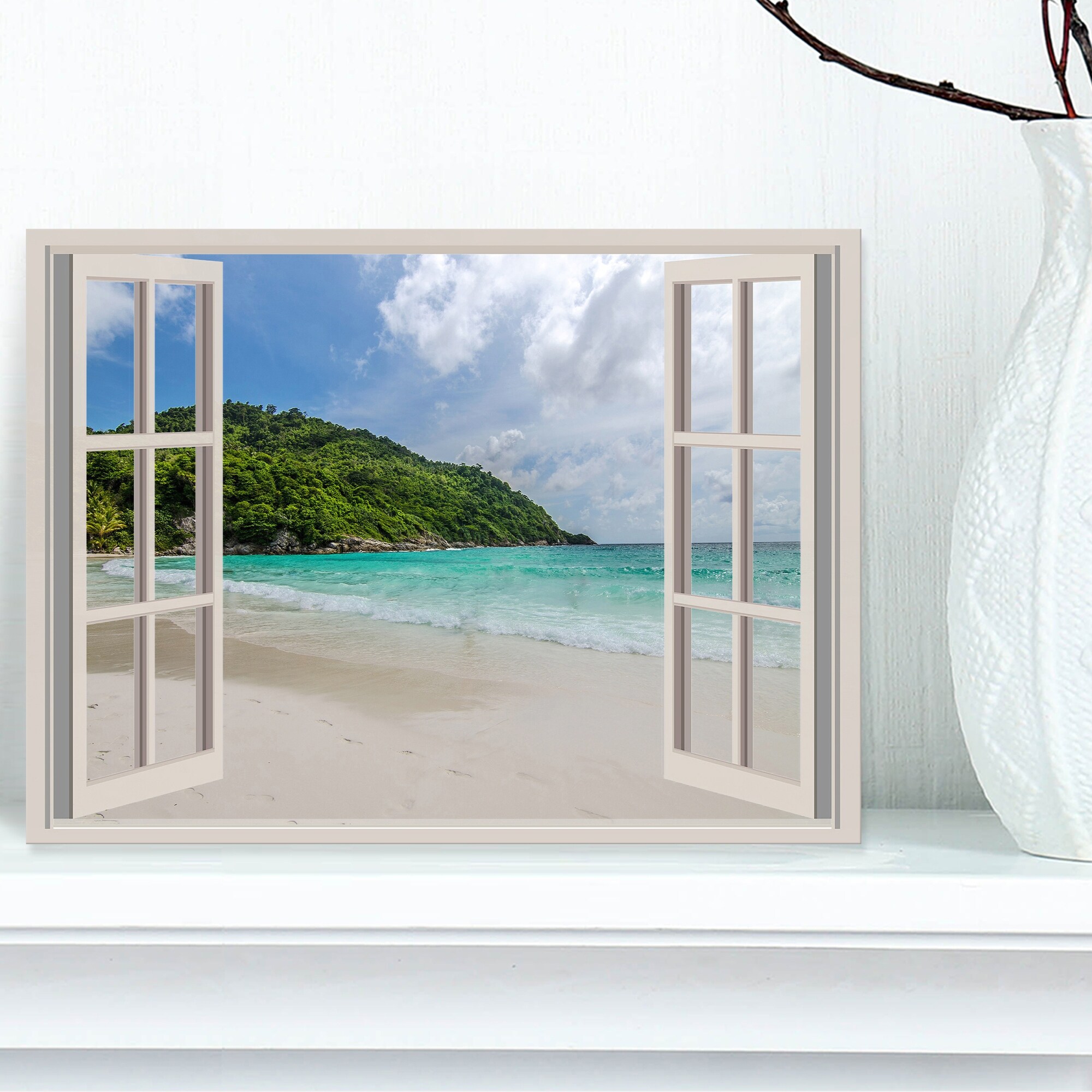 Designart "Open Window to Calm Seashore" Extra Large Seashore Canvas Art