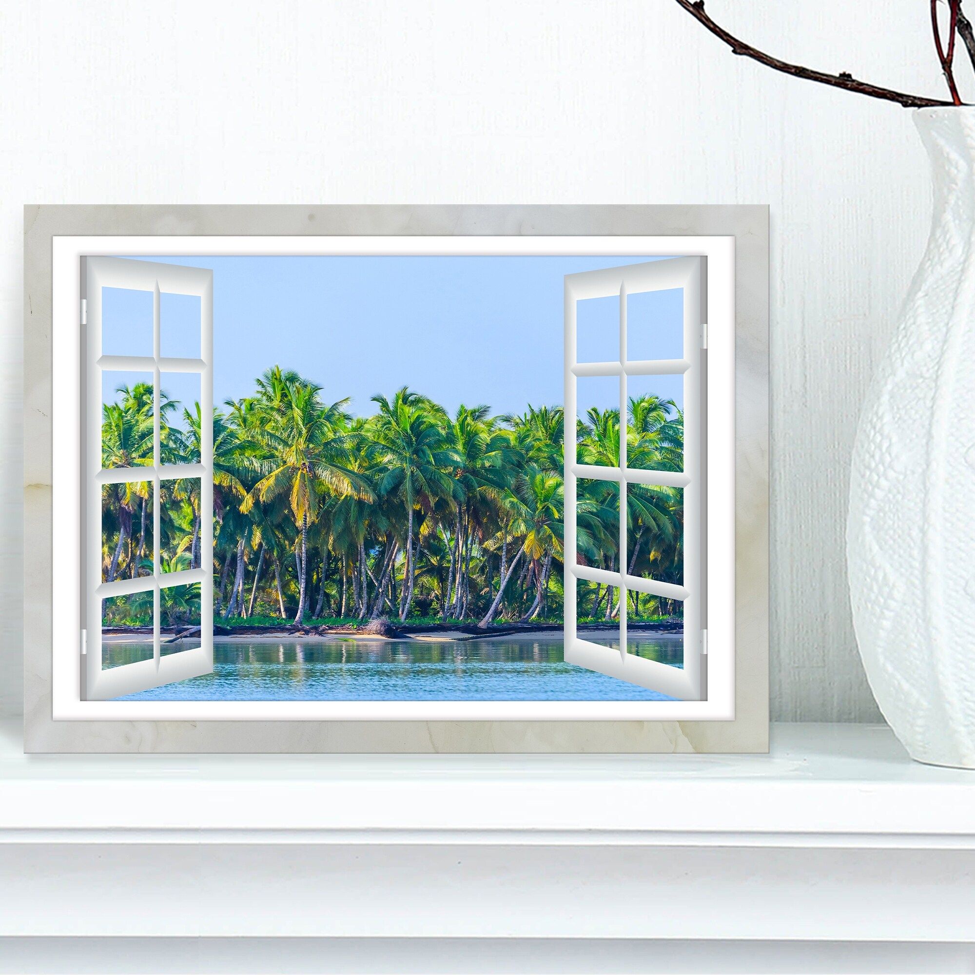 Designart "Open Window to Seashore Palms" Extra Large Seashore Canvas Art