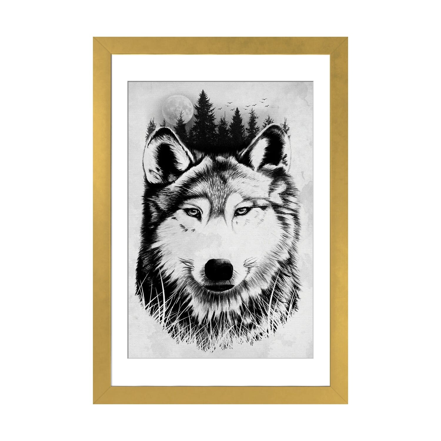 iCanvas "Wolf In Moonlight" by Riza Peker Framed Canvas Print