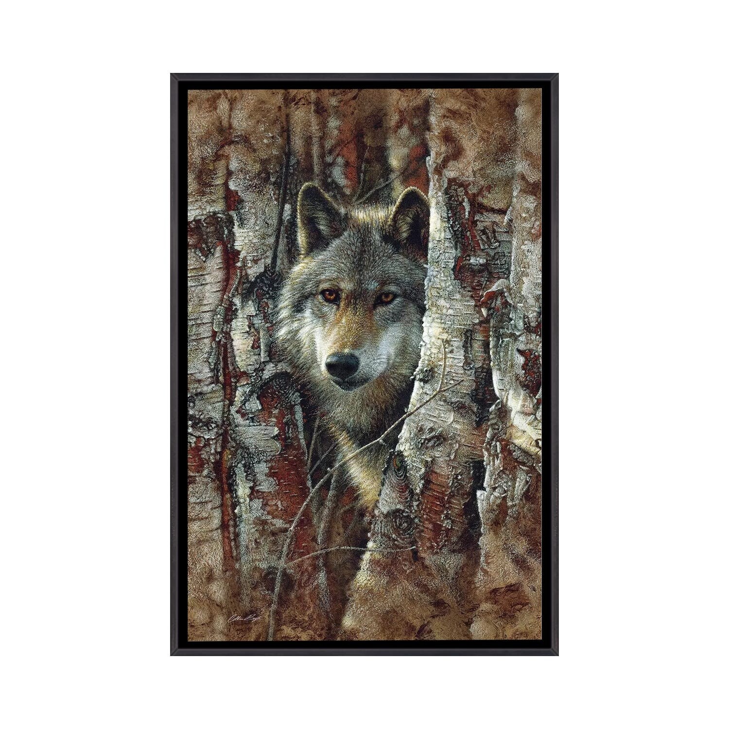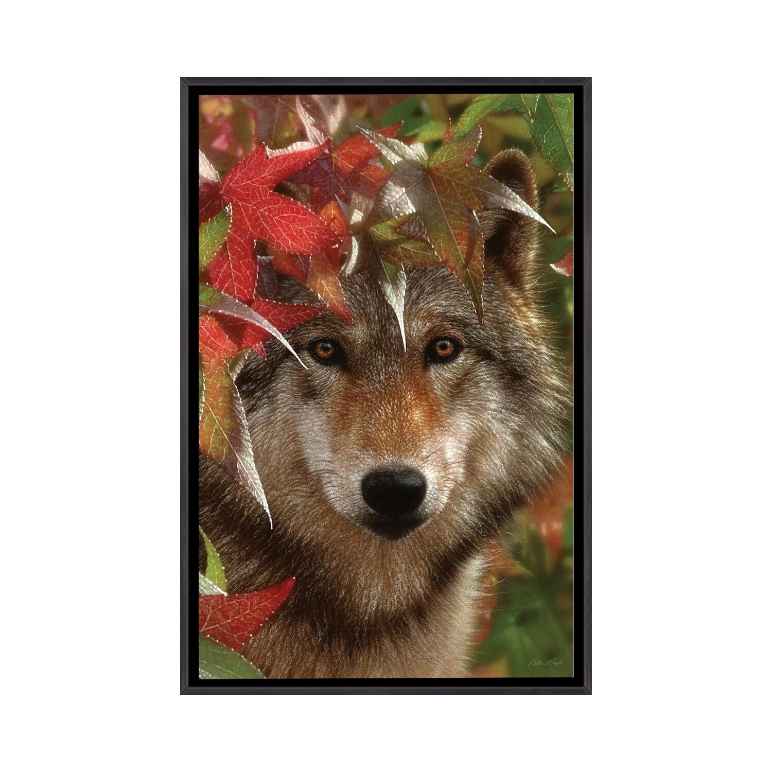 iCanvas "Autumn Encounter - Gray Wolf, Vertical" by Collin Bogle Framed Canvas Print