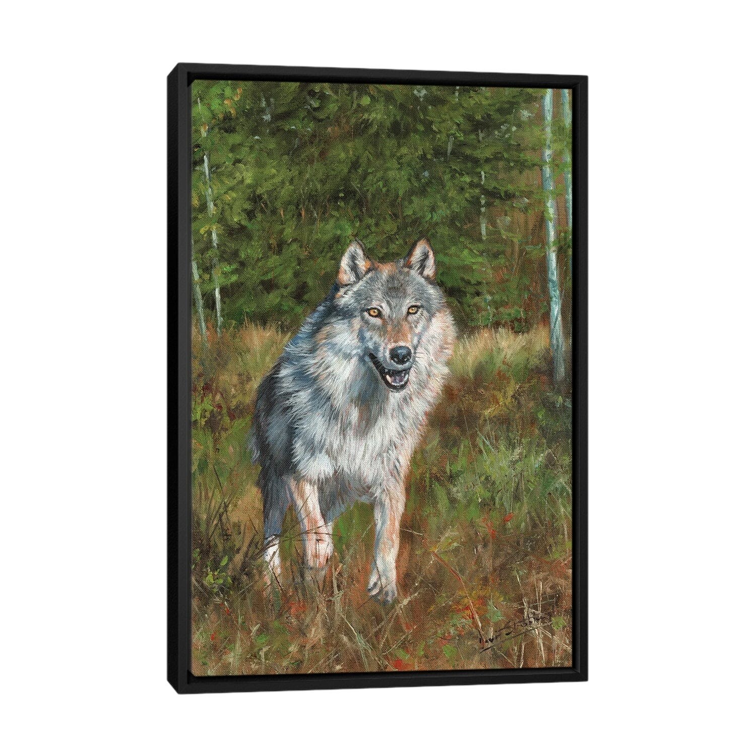 iCanvas "Wolf Running" by David Stribbling Framed Canvas Print