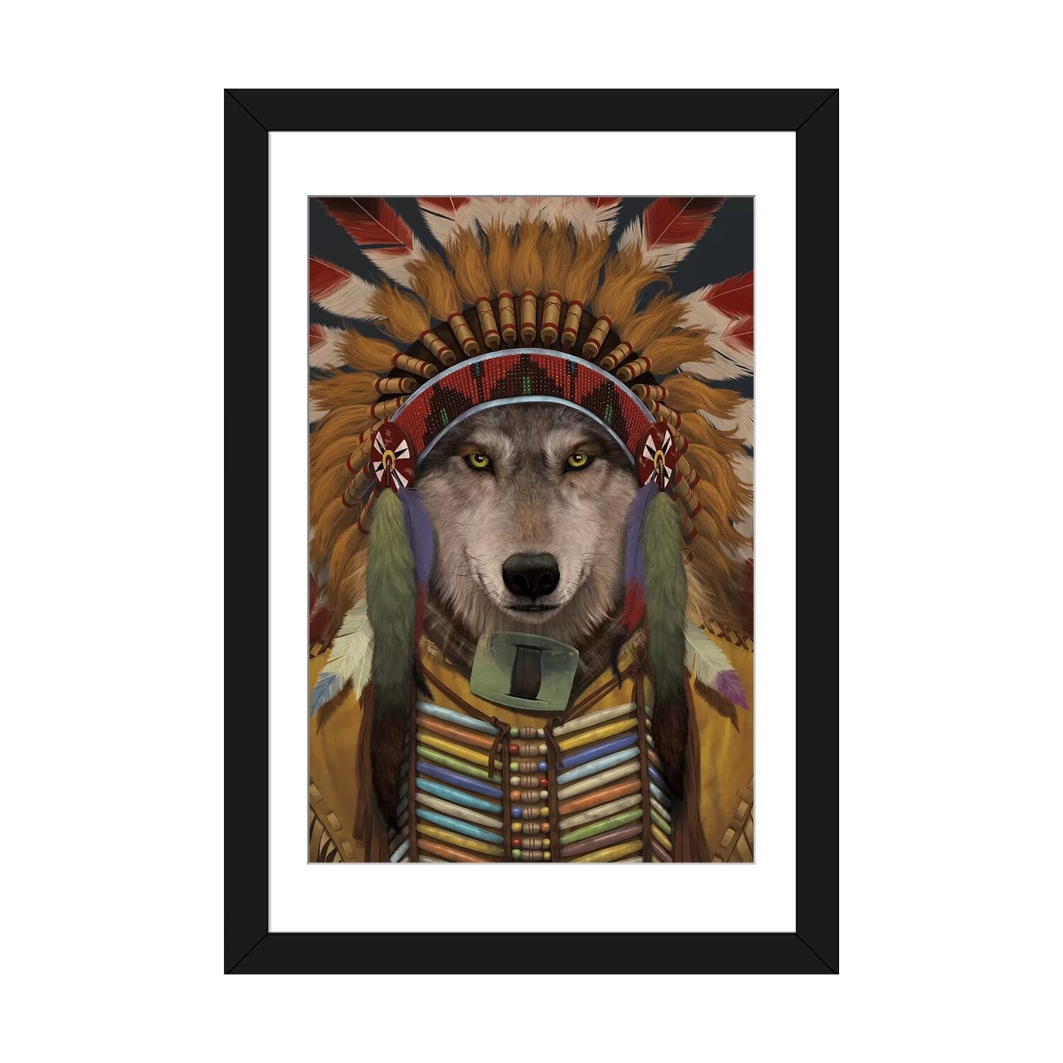 iCanvas "Wolf Spirit Chief" by Vincent Hie Framed Canvas Print