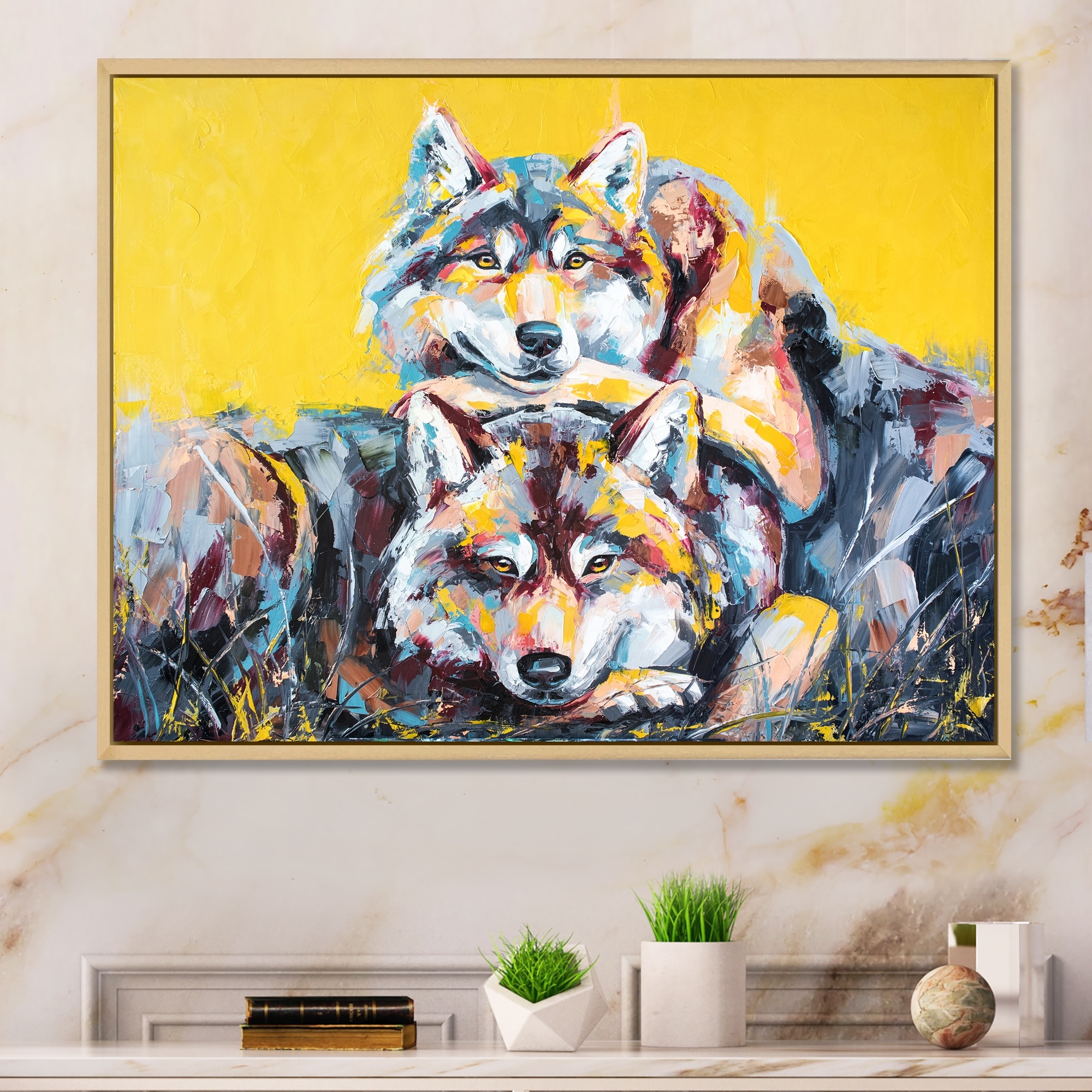 Designart "Colorful Wolf Wildlife Emotion" Modern Framed Canvas artwork