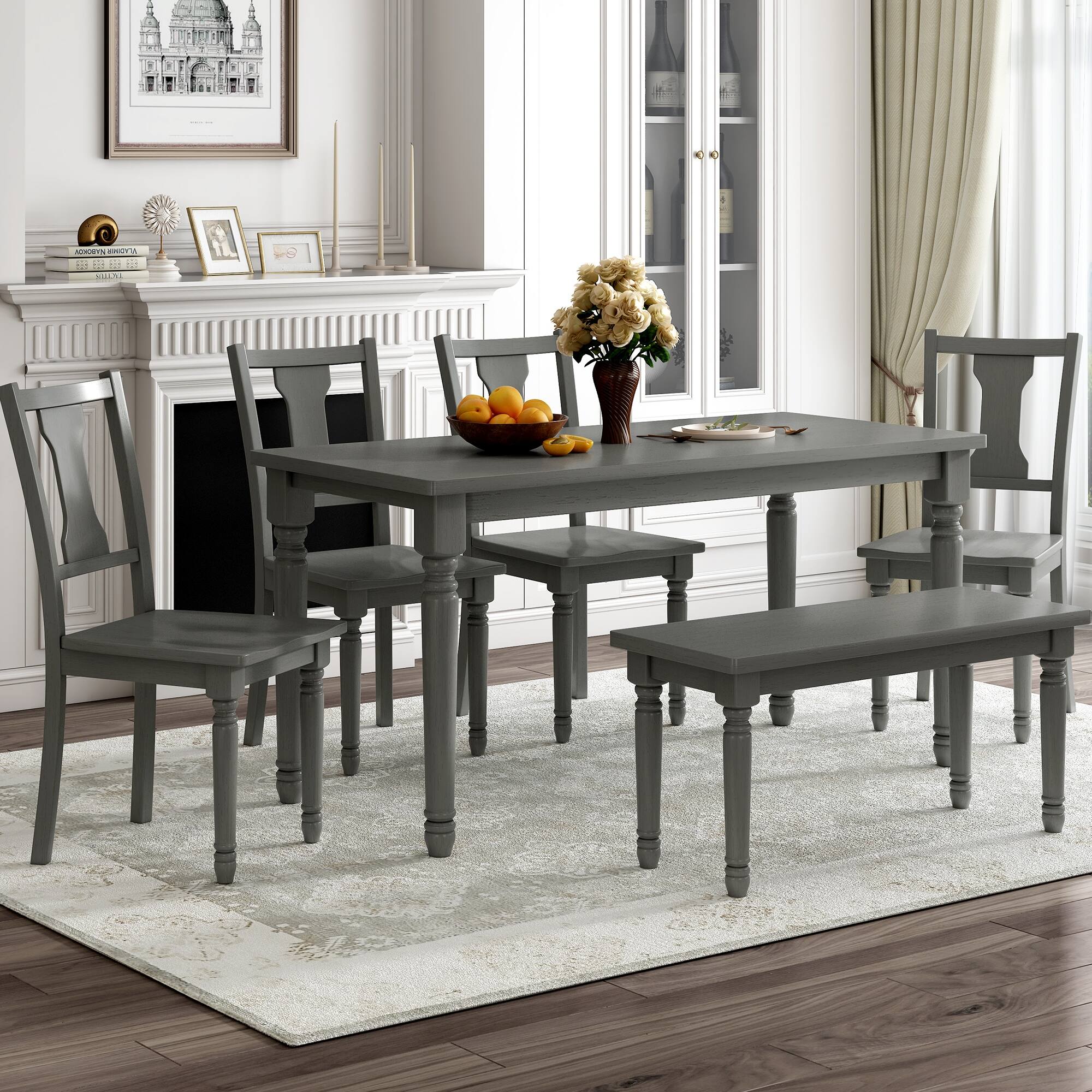 Rustic Farmhouse 6-Piece Wooden Dining Set with Chairs and Bench