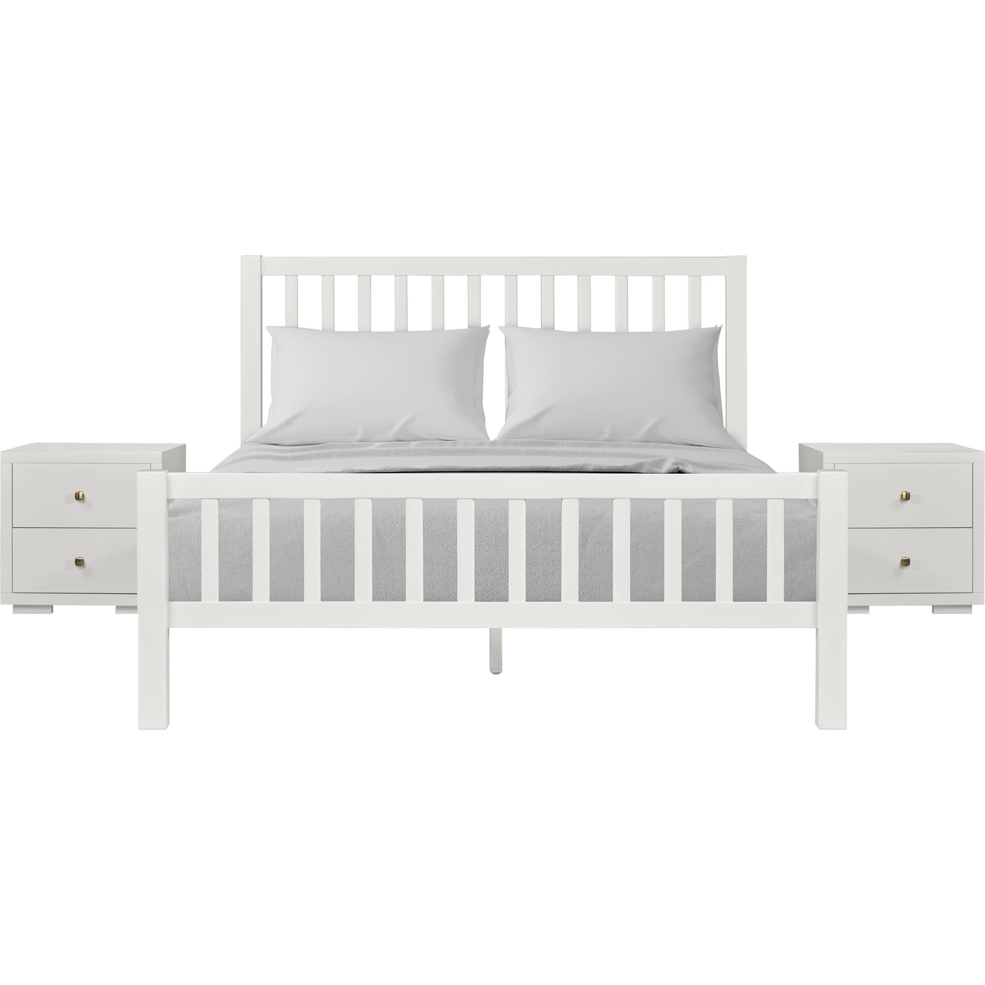 Hampton Wooden Platform Bed with 2 Nightstands