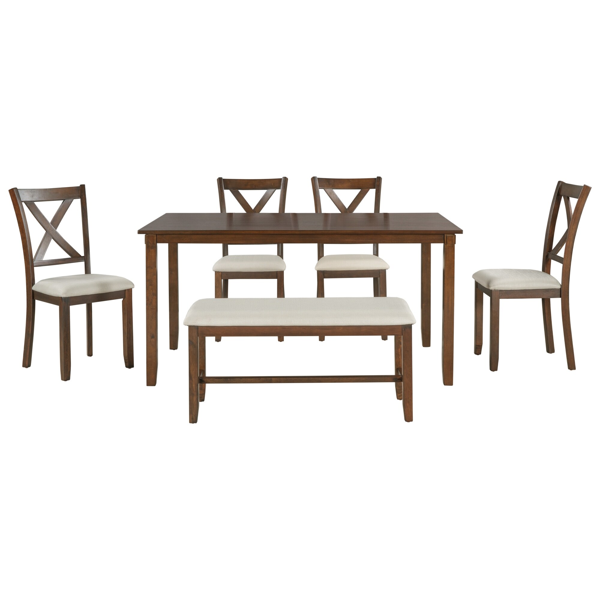 6-Piece Wooden Dining Set with Bench, Kitchen and Dining Room