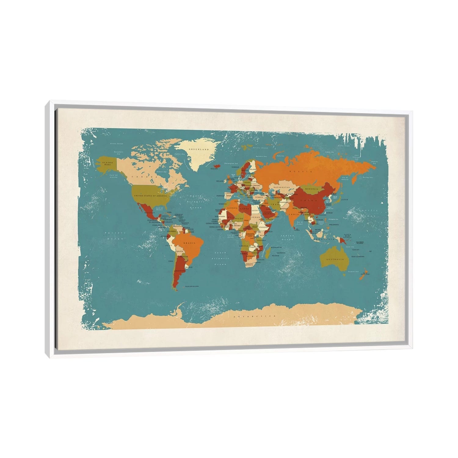 iCanvas "Retro Political Map of the World IV" by Michael Tompsett Framed