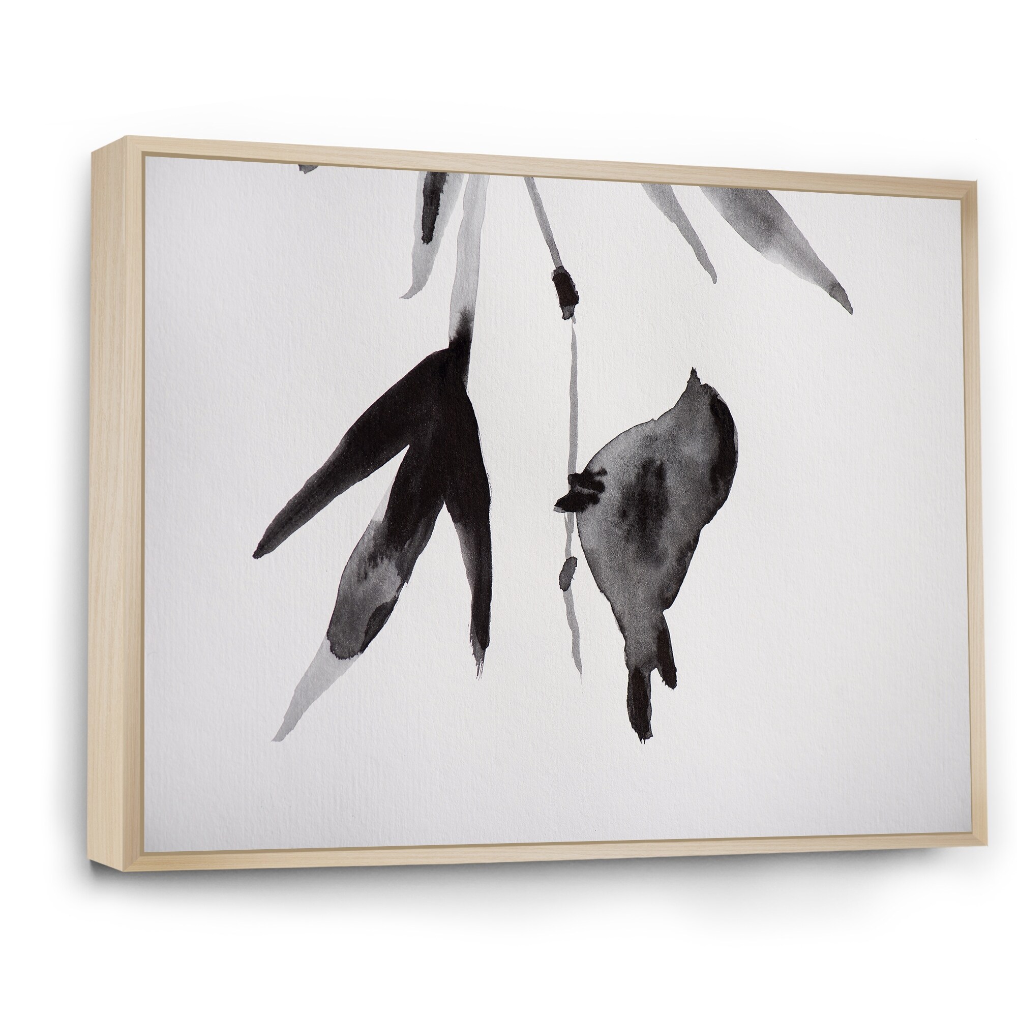 Designart "Japanese Vintage Creative Leaves I" Floral Framed Art Set of 2 Pieces