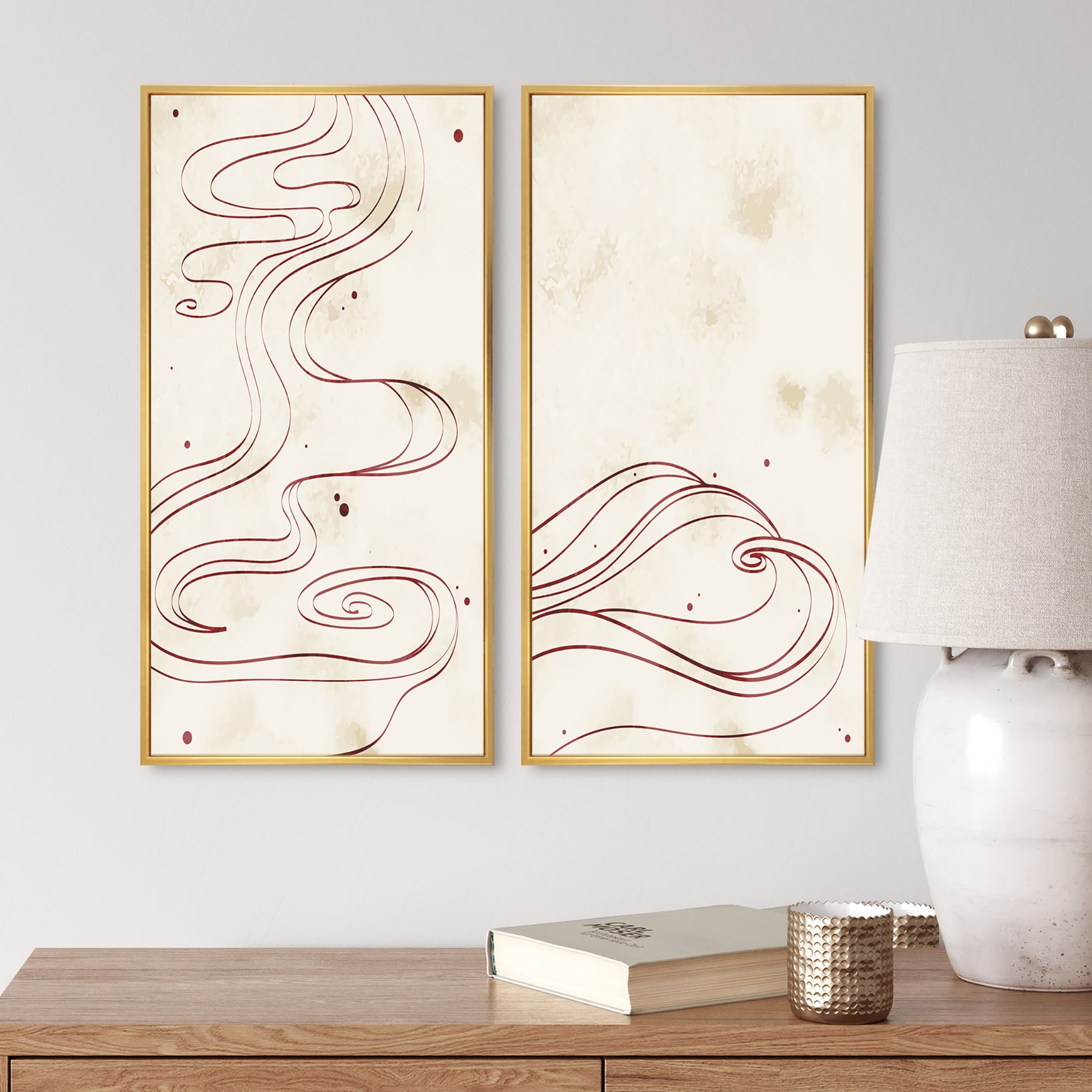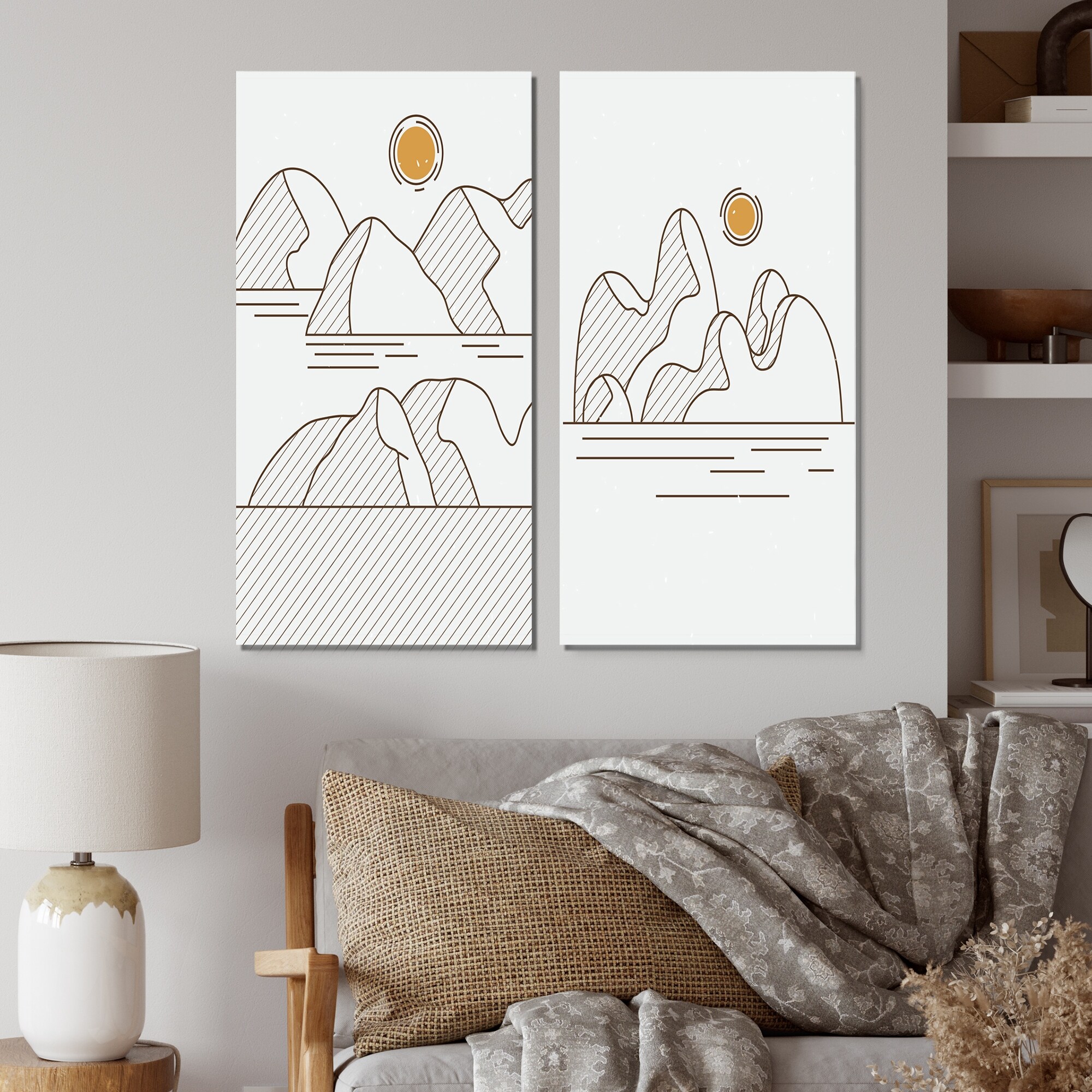 Designart 'Japanese Line Art Landscapes I' Landscapes Set of 2 Pieces