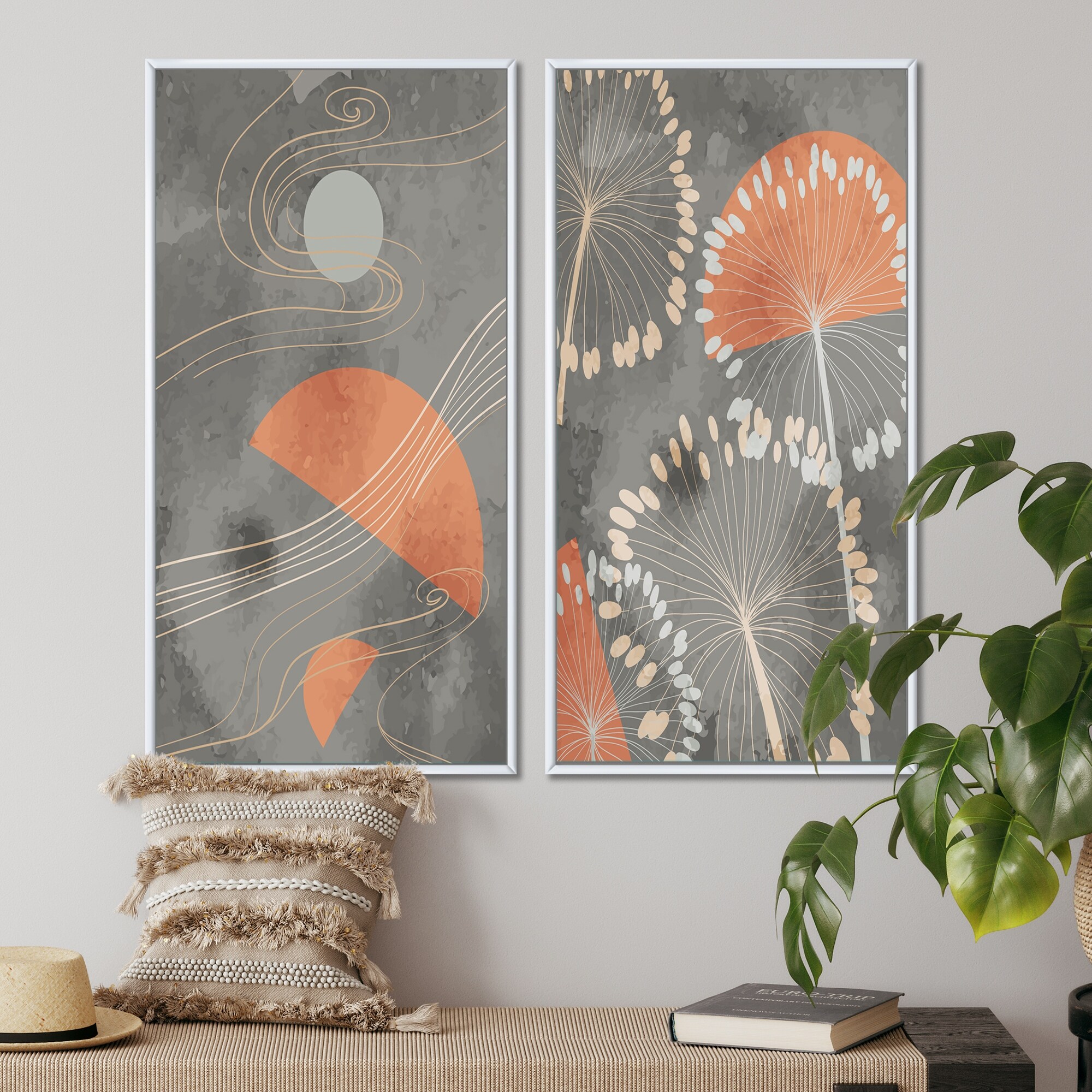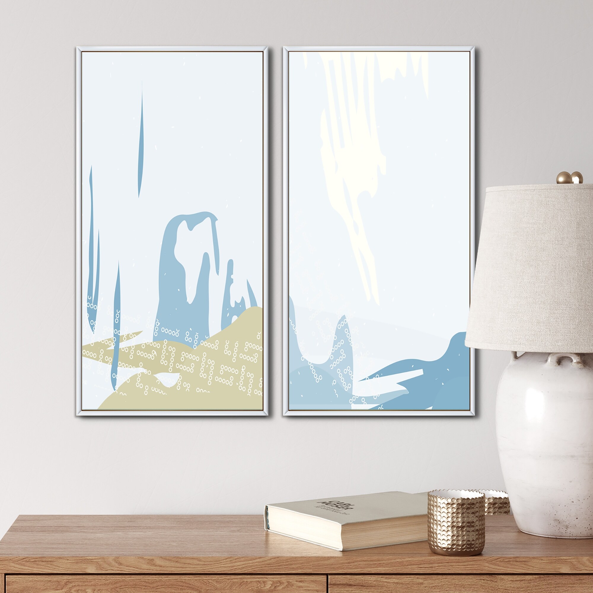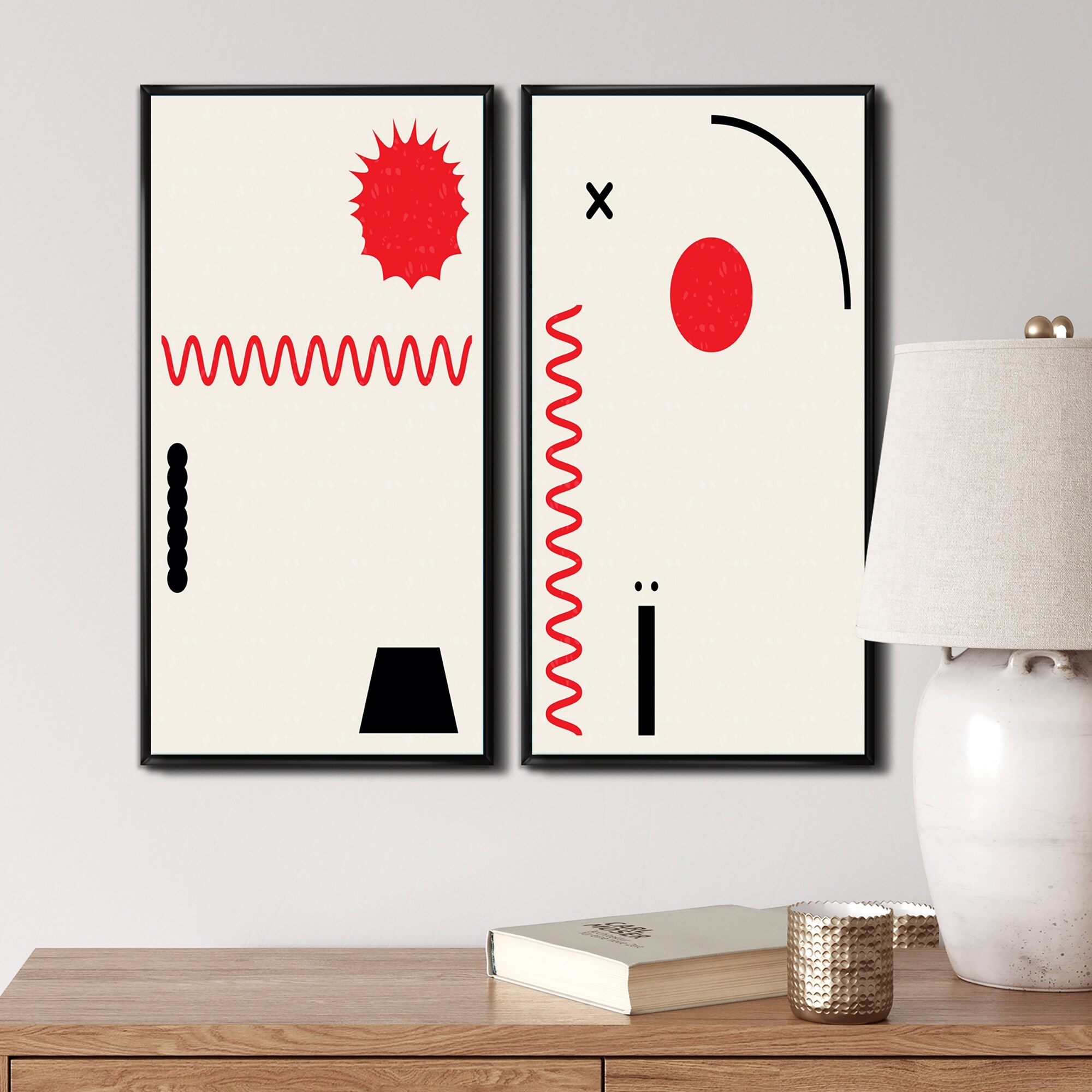 Designart "Japanese Vintage Grunge Doodles I" Abstract Framed Art Set of 2 Pieces