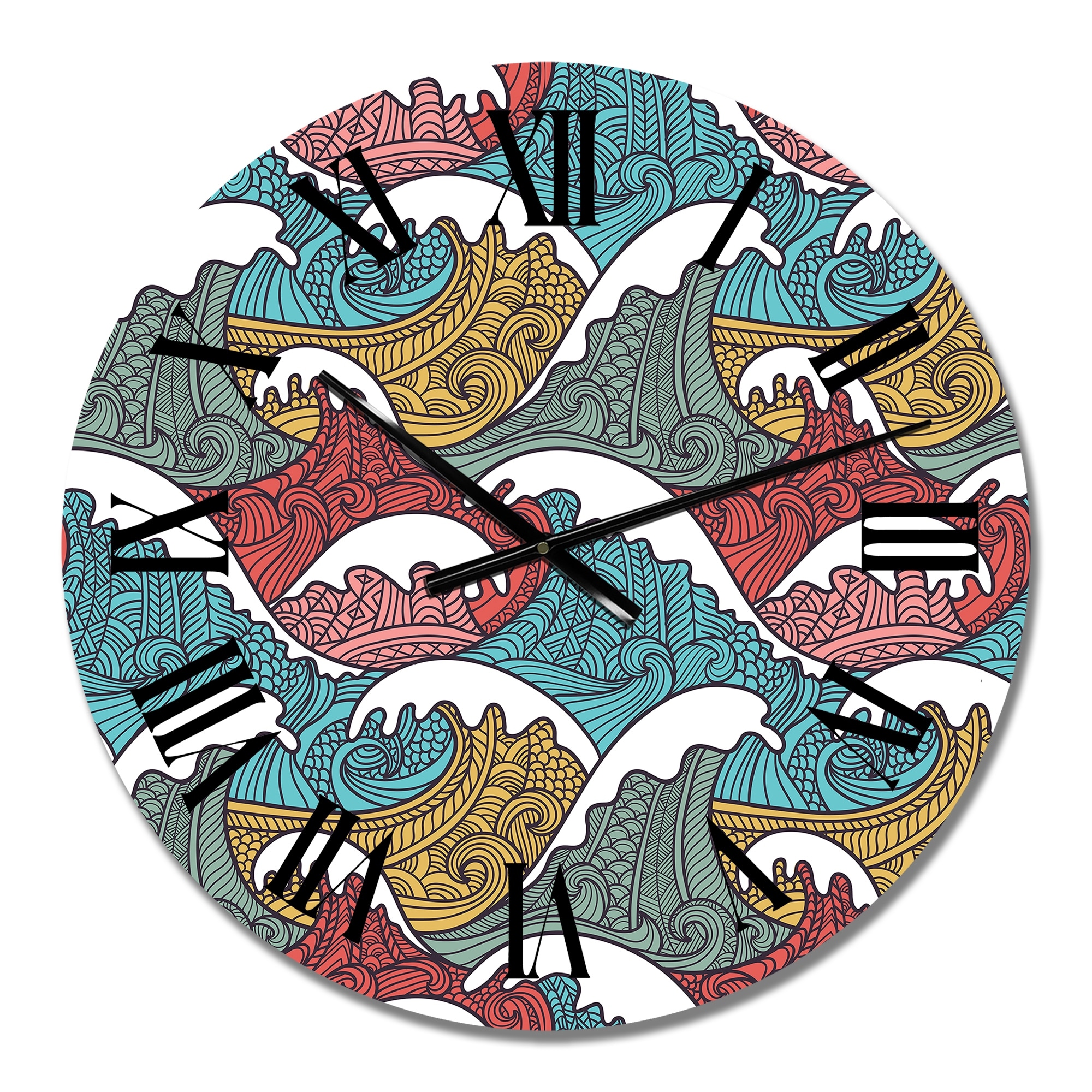 Designart 'Red Blue And Grey Japanese Waves' Nautical & Coastal wall clock